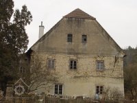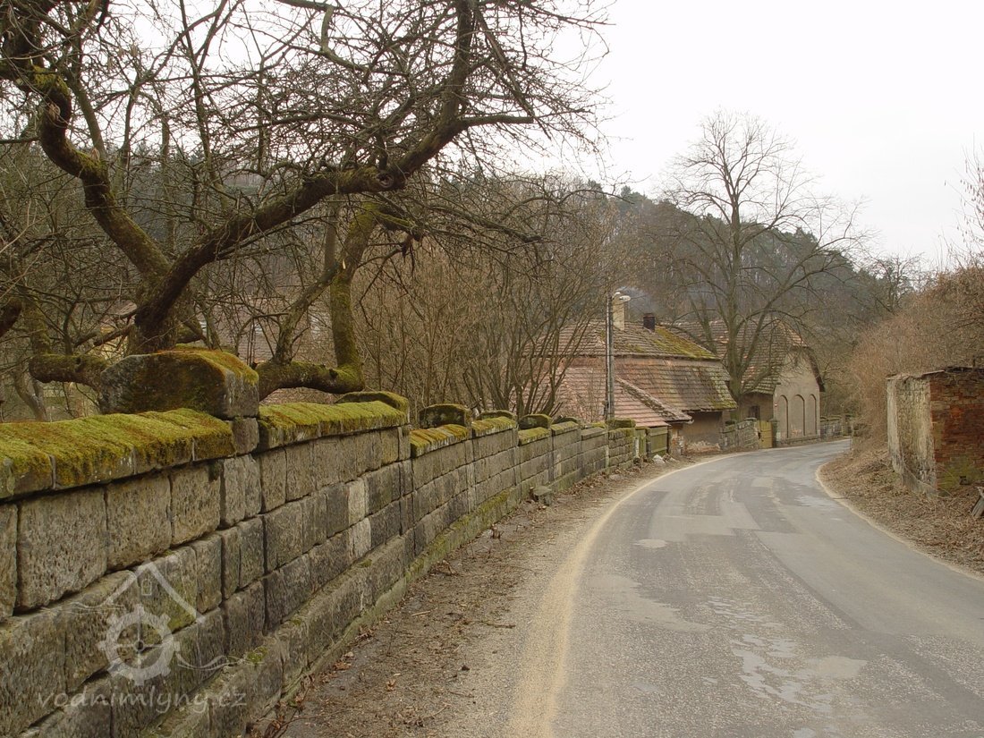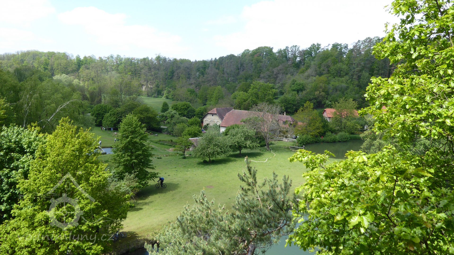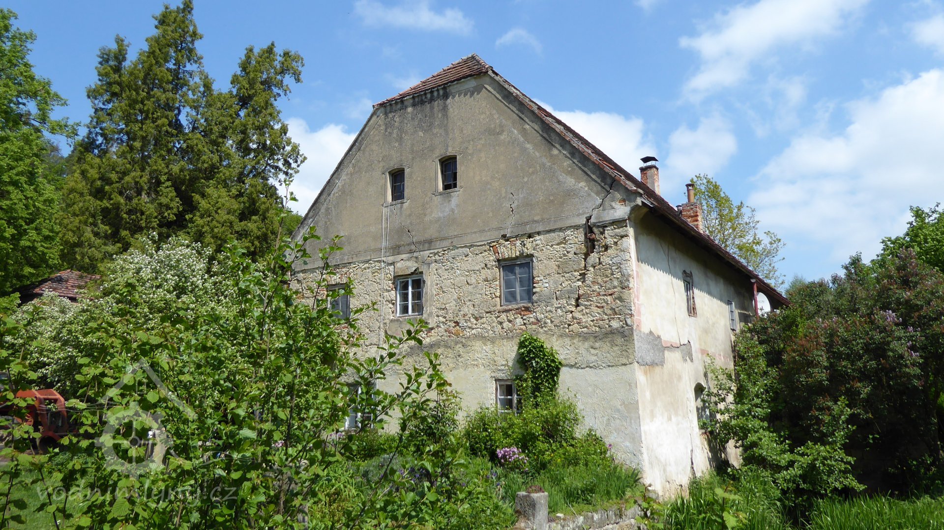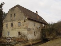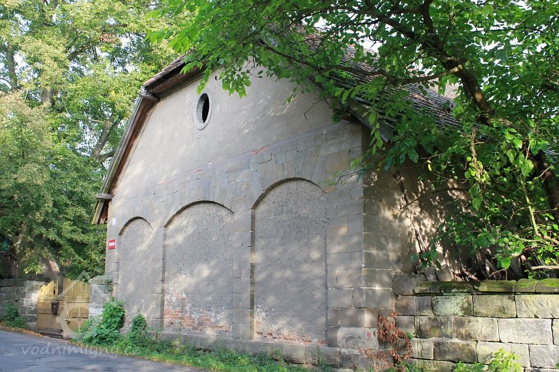 Zděný mlýn leží pod obnoveným rybníkem, jehož výpust má strouhu vysekanou ve skále. Na jejím dně je prosekané obdobné požírací koryto jako na Tuboži. Nad strouhou je vstup do dvou prostor, vysekaných v pískovcovém masivu. První je ve výškové úrovni vstupu, do druhé se sestupuje z první po sedmi schodech. Ve vstupu jsou patrné stopy po zárubních a uzavírání objektu. Jedná se o komoru a níže umístěný sklep, přístupné z protější strany strouhy po dřevěné lávce. Jejich zdánlivě neobvyklé umístění v situaci staveb mlýna je vzhledem k užitému materiálu právě typické, k zahloubení byla využita usedlosti nejbližší pískovcová skála. Způsob práce v lomové stěně i při vysekání objektu odkazuje do pokročilého novověku.