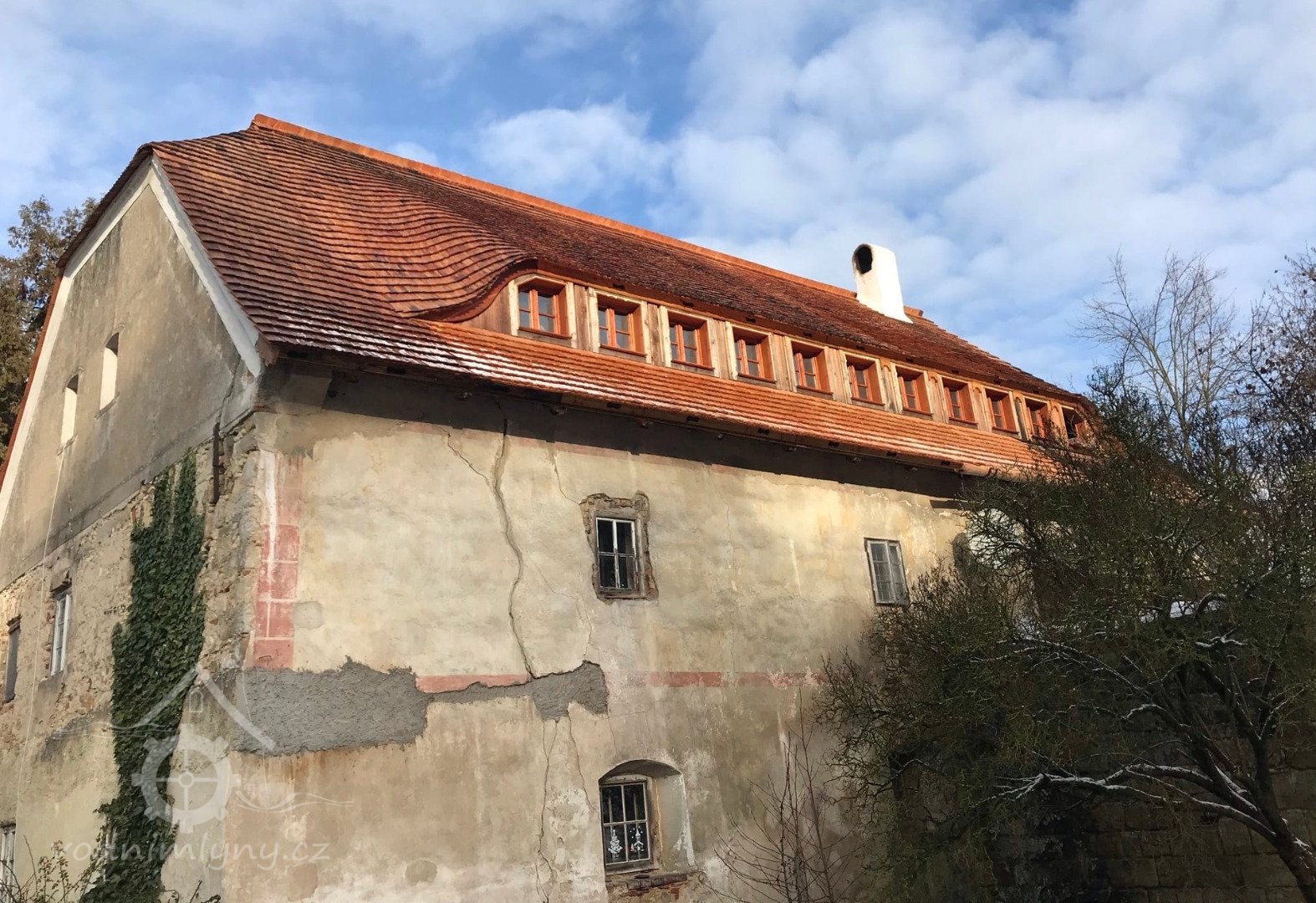 V roce 1756 byl postaven nový zděný mlýn pod opačným koncem hráze rybníka, byl v majetku Lobkowiczů. Z pozdně barokního období se dochovala patrová zděná budova s mansardovou střechou, datovaná ve štítu do roku 1756. Na východní straně je objekt lednice, vyzděné z pískovcových kvádrů. Budova mlýna má dvoudílnou dispozici s dlouhou síní, jejíž zadní podélná část sloužila zároveň jako mlýnice. Z technologického zařízení se dochovala dubová hranice s barokně profilovanými sloupy a hlavicemi a palečné kolo. Severovýchodní štítové průčelí má přízemí zapuštěné ve hmotě hráze. Nad úroveň terénu vystupuje první patro průčelí, ve kterém se nachází vstup na zanášku