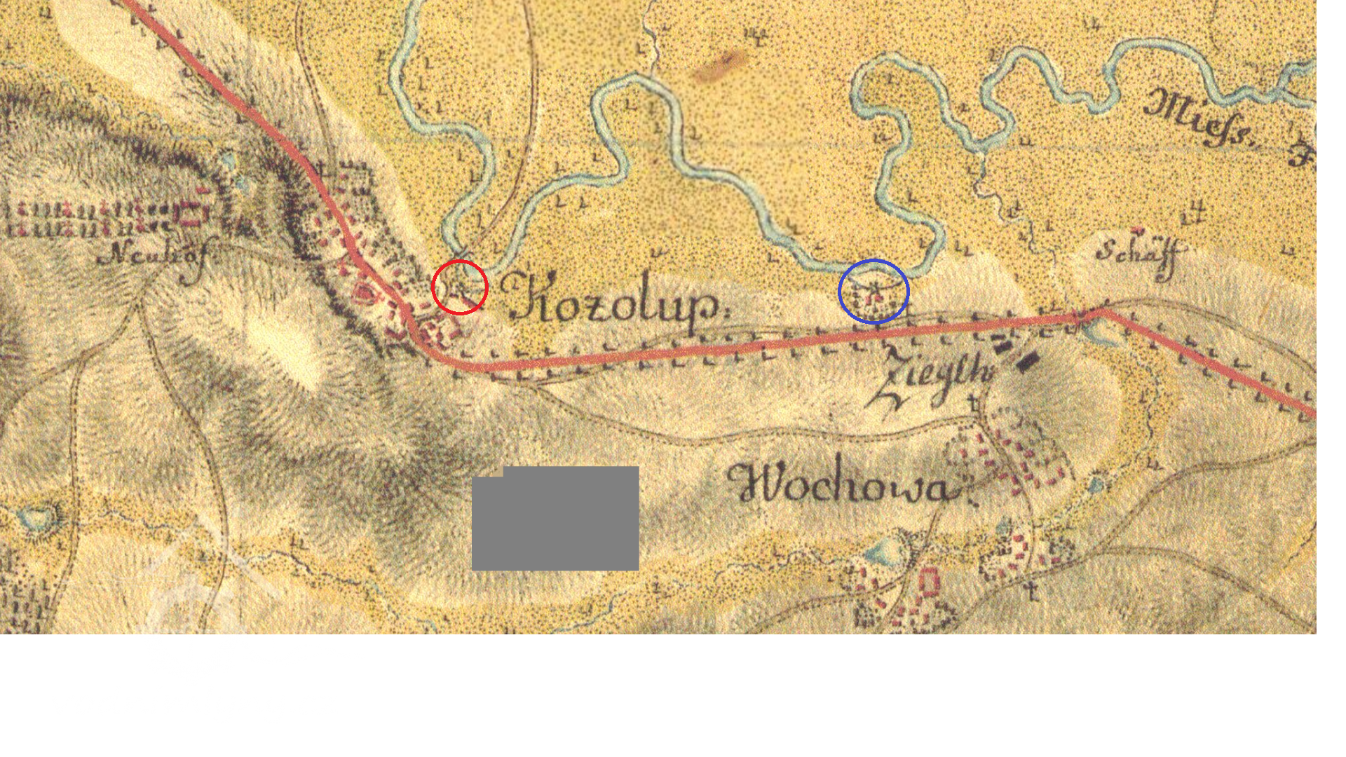 500 m sv od kostela sv. Štěpána v Kozolupech