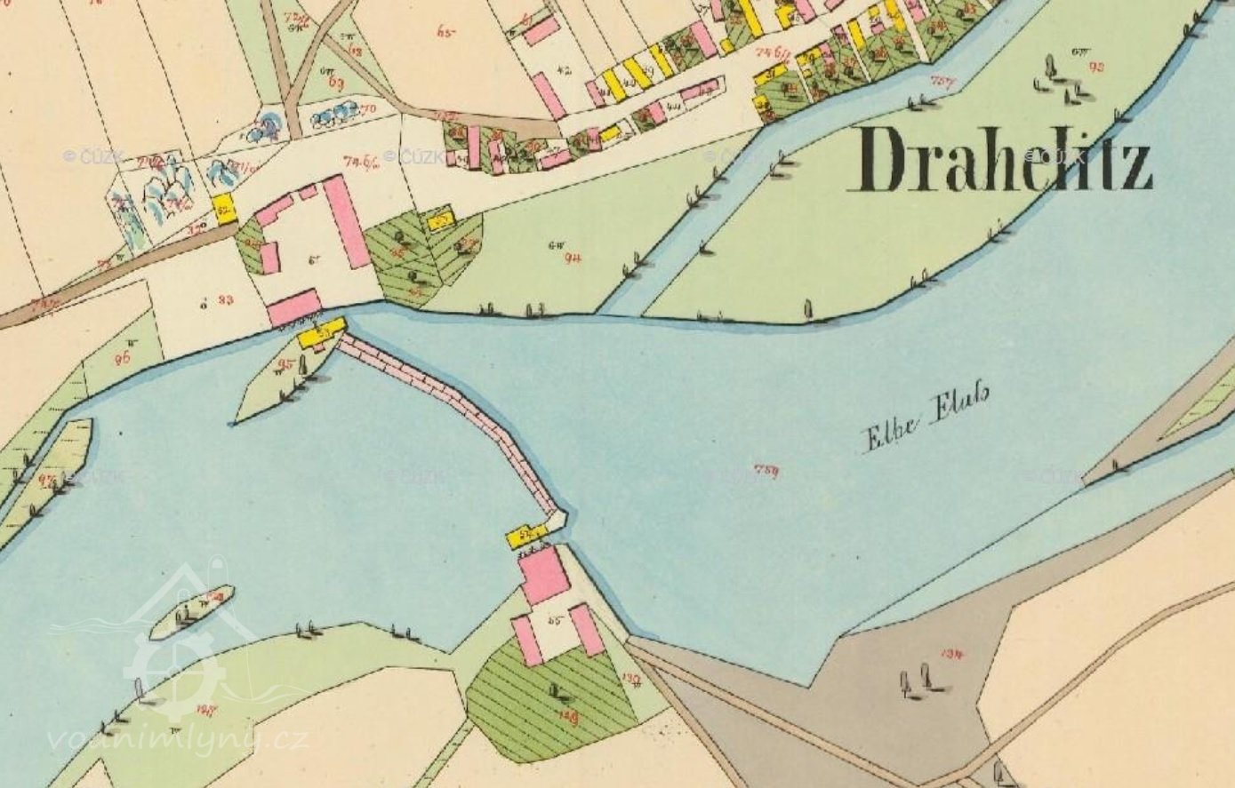 Naproti mlýnu přes Labe stál další velký labský mlýn Bašta.