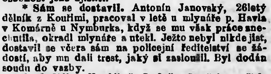1673 nájemce mlýna Jiří Čapek žádá městskou radu, aby mu pro "špatnost mlýna"  snížila nájemné. Sníženo o 30 zl., nadále platí pouze 90 zl.