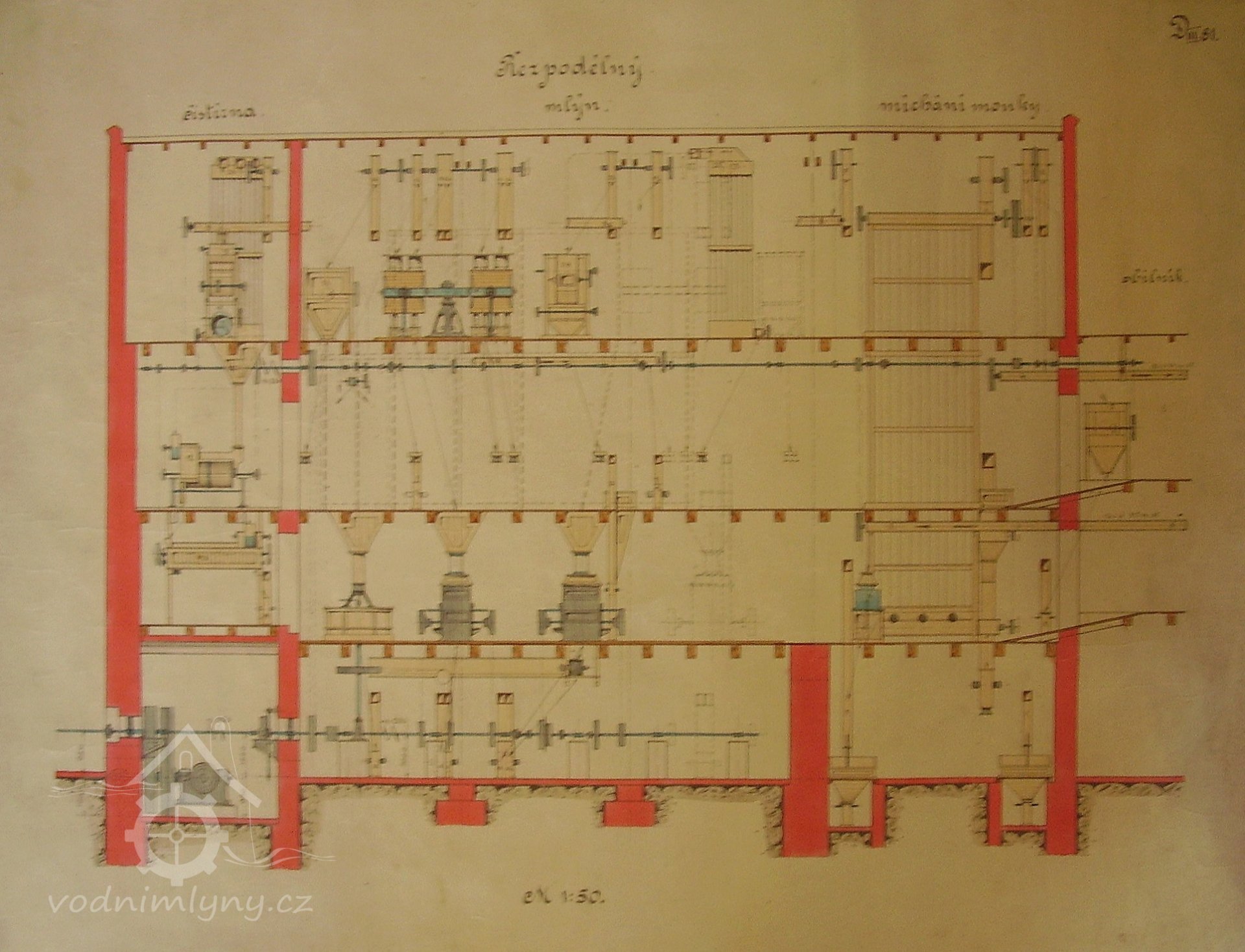 Příčný řez mlýnicí v úrovni reformy. Soukromá sbírka, před 1910, © autor neznámý