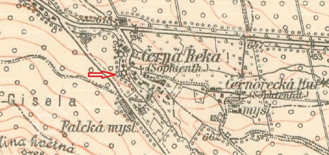 Černá Řeka (Sophienthal). Lidové označení místa znělo německy "Schwarzbach" – Černá řeka a odvozovalo se od jména potoka, na němž osada ležela. Osada byla založena roku 1790 deseti německými osídlenci. V osadě stál mlýn a hostinec (původně se jednalo o myslivnu). V 19. století zde fungovala brusírna skla, která přinesla rozvoj osady až na 27 usedlostí s 278 německy mluvícími obyvateli.