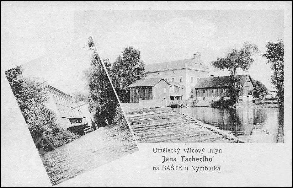 Když mlynář Václav Kulich těžce onemocněl, museli Baštu v roce 1852 prodat. Novým majitelem se stala rodina Tachecí. Tehdy zařízení mlýna mělo 7 složení a pilu. Po požáru v roce 1885 došlo k zásad­ní rekonstrukci mlýna. Byla vystavěna nová novore­nesanční budova, instalována turbína a zrušeny dva žlaby pro kola na spodní vodu. Moderně koncipovaná mlýnice měla osm válcových stolic. Další požár v roce 1923 ale mlýn natolik poničil, že už nebyl obnoven. Objekty se využívaly k zemědělské výrobě, neboť rodina Tachecí vlastnila také 80 ha půdy.
