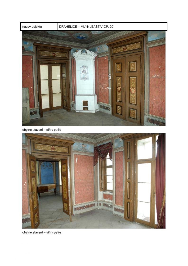Vstup do budovy rámuje pískovcový portál s letopočtem 1783. V přízemí zaujmou kachlová kamna z konce 19. století, kachlová vana zapuštěná do podlahy a černá kuchyně proti vchodu. V prvním patře vedle pokojových kachlových kamen překvapí krásně vymalované stěny od Václava Mánesa, někte­ré vytvořené pomocí šablon, jiné ručně malované. Ve vstupním sále proti schodům jsou na stropě alego­rie průmyslu, védy, umění a zemědělství, na stěnách pak alegorie lásky, svobody, tance, hudby, hojnosti, míru a létání. V sousedním salonu, označovaném také jako sváteční pokoj, jsou na stropě alegorie čtyř ročních doba dvě malby v bohatém orámováni. Jedna zobrazuje exotickou krajinu (vyjadřuje touhu cestovat), druhá podobu mlýna Bašta v 1. polovině 19. století.