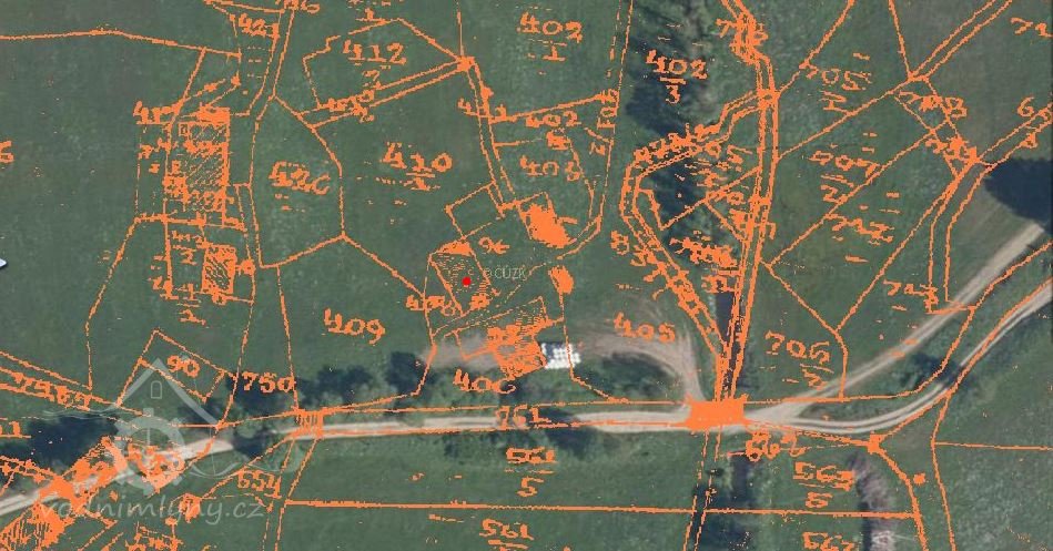 Otisk stabilního katastru z roku 1838 – spalná obdélníková budova s jedním kolem u rybníka, majitelem Widerspergové z Mutěnína.