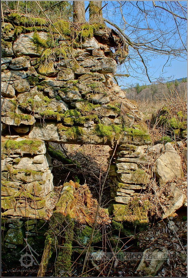 Stabilní katastr v roce 1838 zaznamenává severně nad obcí dvě samostatné dřevěné budovy, dvě kola, náhon.