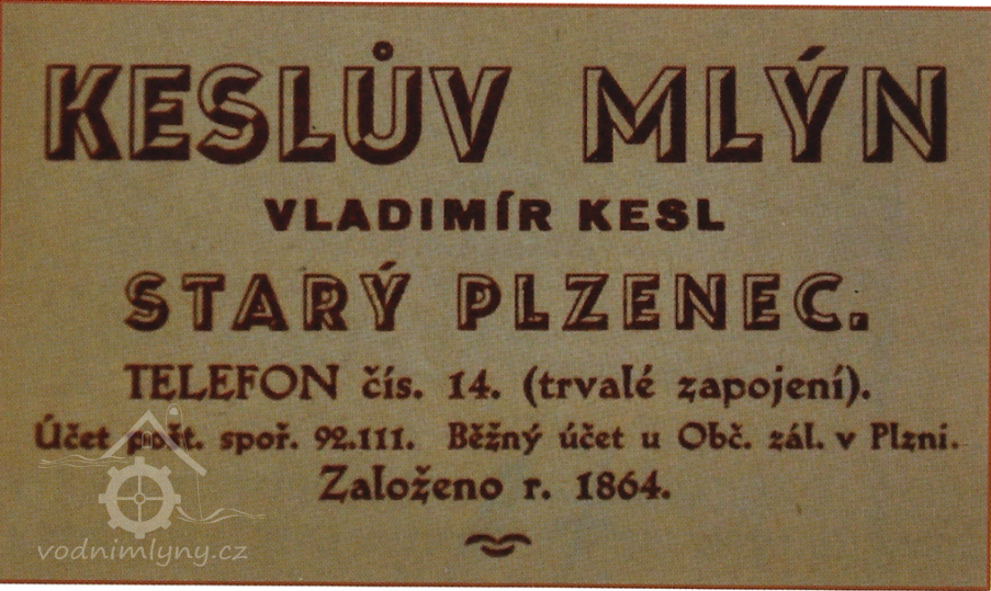 1928 zakoupil čižický mlynář Antonín Kesl pro syna Vladimíra (* 1902)