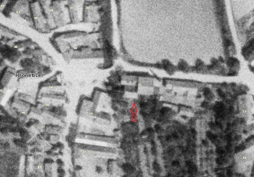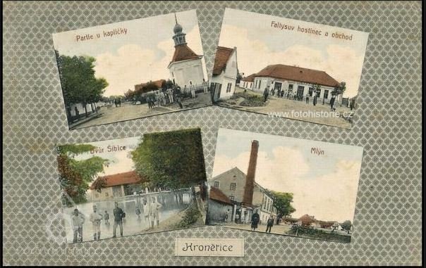 Mlýn však musel existovat již dříve. V kostomlatské kronice je zápis k 20. květnu 1678, kdy byl oddán Jakub, mlynářský v Hroněticích s Rosínou Řícelovou. (MH)