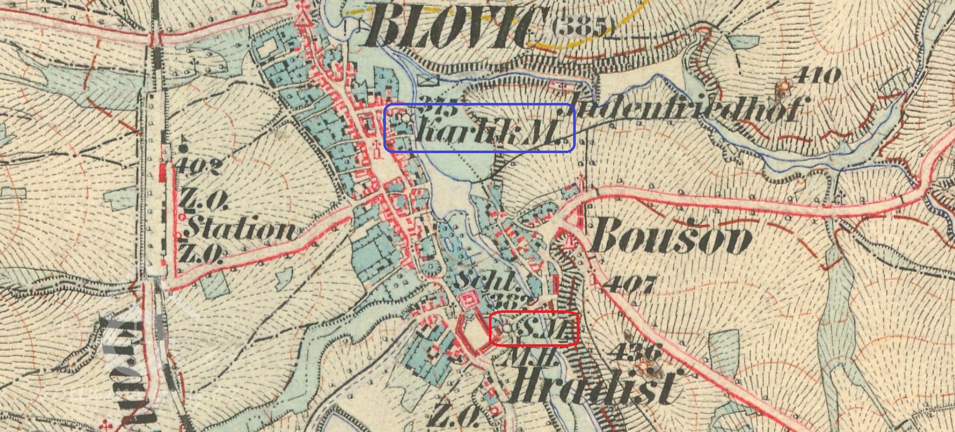 500 m jv od kostela sv. Jana Evangelisty v Blovicích