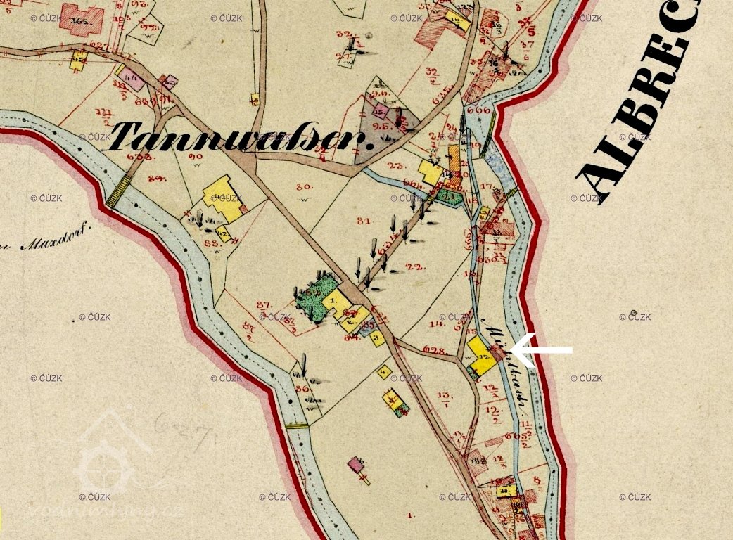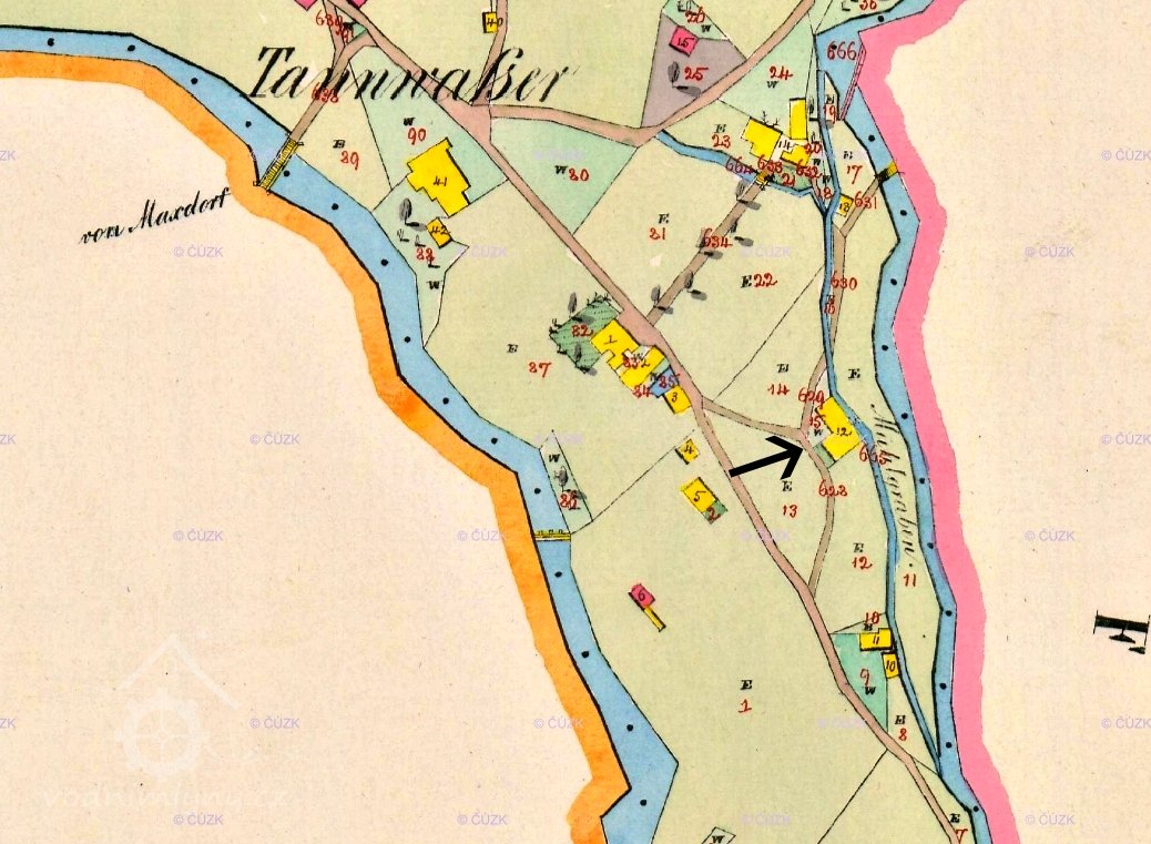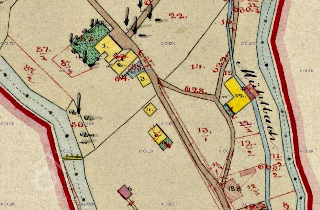 Popis1933: 1 kolo na svrchní vodu, hltnost 0,15 m3/s, spád 6,26 m, výkon 9,89 HP
