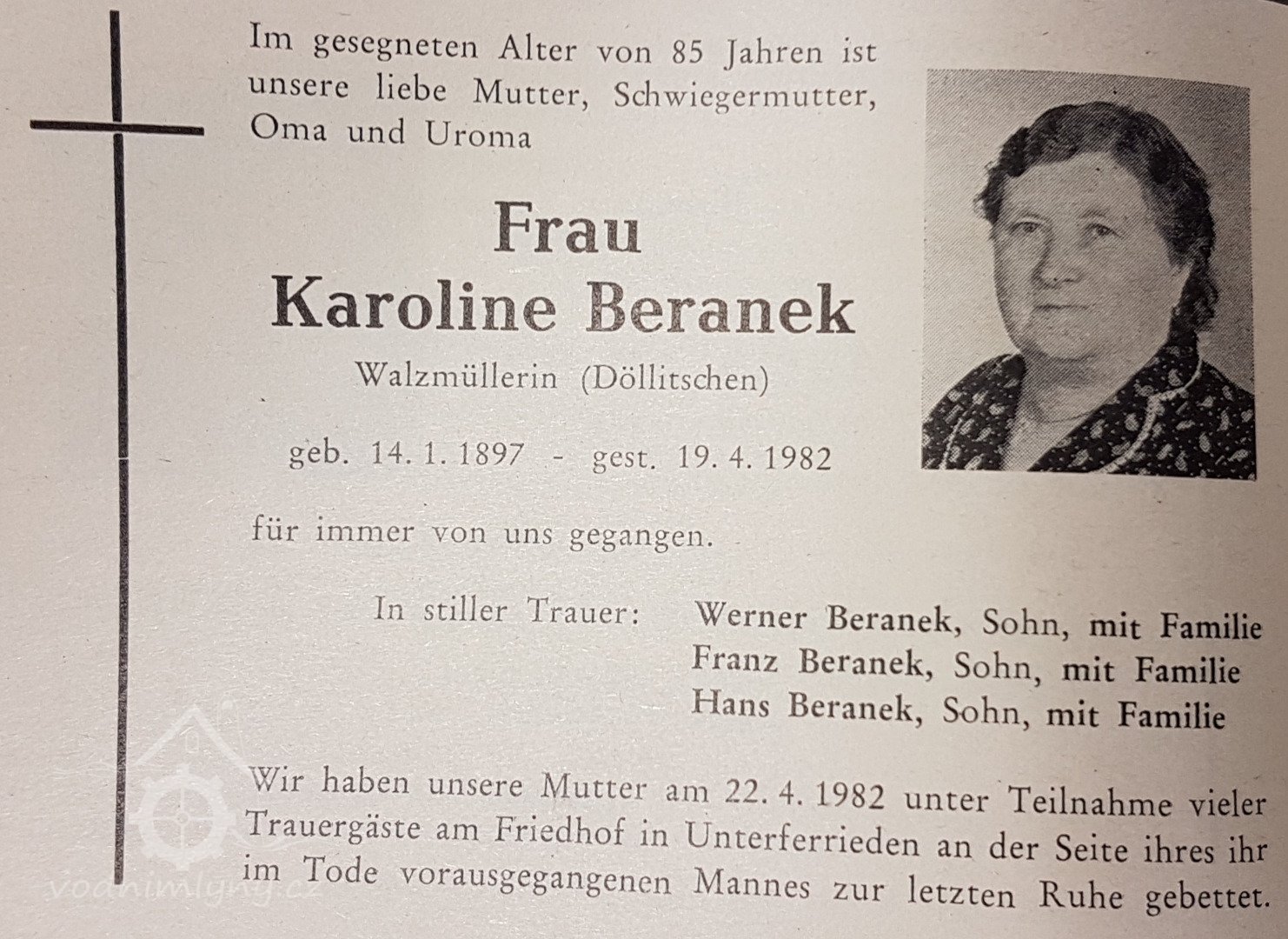 Prostibor, Tochter des Johann Trescher, Müller in der Petermühle und der Anna Guldan, aus Maschowitz.
