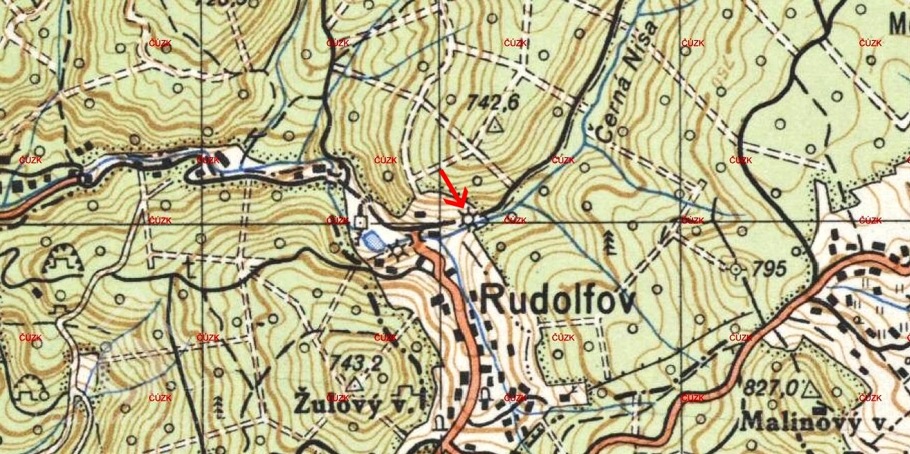 · V Jizerských horách u křižovatky cest na Žulovém svahu nad údolím Černé Nisy stojí kříž. Připomíná místo, kde 13. března 1864  zemřel mlynář Anton Jäger z Rudolfovského mlýna (někdy také Buschmühle - podle německého jména obce), připomínaného v údolí Černé Nisy již v 17. století.
