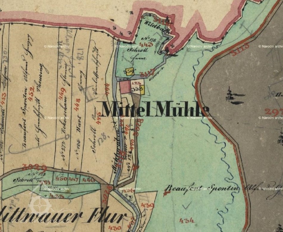 V roce 1841 mlýn s čp. 128 v držení Franze Schrolla.