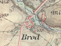 Heirat in Brod 9.6.1874, Johann Heindl, 22 J, Färbermeister in Mies 157, Sohn des Johann Heindl, gew. Färbermeister in Mies 157 und der Anna Gutt, verstorben mit der Anna Böhm, 23 J, aus der Franzensmühle 54 bei Pettlarn, Tachau, wohnhaft in Brod 4, Tochter des Georg Böhm, Mühlmeister und Besitzer der Broder Mühle, Brod 4 und der verstorbenen Margarethe Schnabl, verstorben, aus Stiebenreith 32