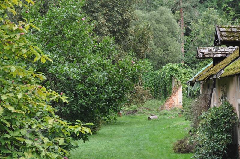 Budovy mlýna stojí v uzavřeném dvoře, v létě jsou porostlé popínavými rostlinami\n