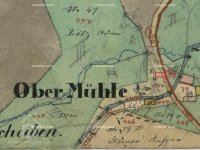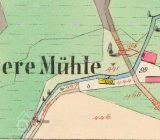 Ve stabilním katastru je mlýn zakreslen jako nevelká zděná budova se dvěma hospodářskými objekty ze spalného materiálu.