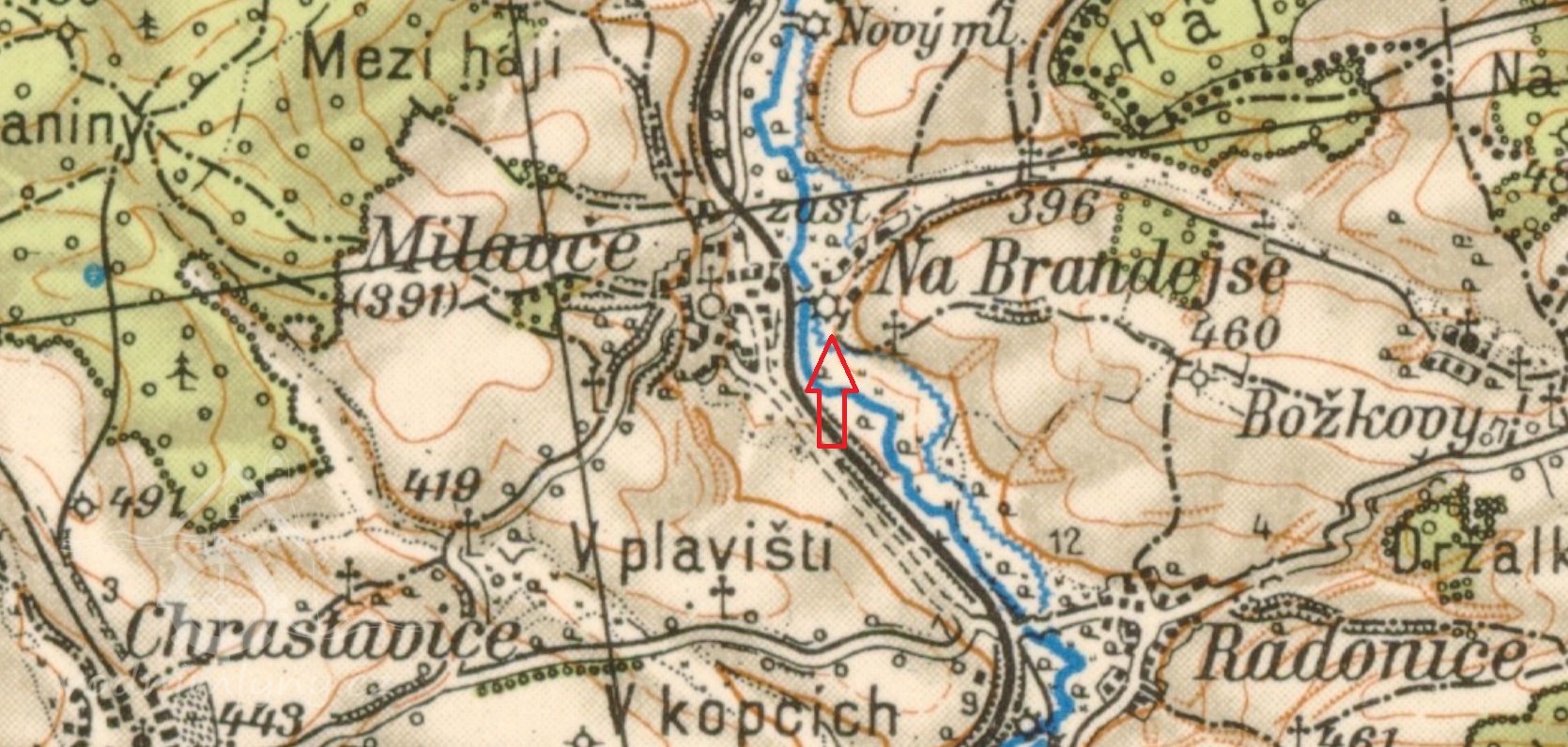 Seznam a mapa vodních děl Republiky československé 1930: Zubřina – Milavče 55 – Josef Taur (Tauer) – mlýn – 1 turbina Francis – 0,460-3,5-16,1.