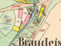 1838 – Císařský povinný otisk stabilního katastru zaznamenává úzkou podlouhlou, již nespalnou, budovu na poměrně dlouhém náhonu, zakreslena jsou dvě kola. Na indikační skice i originální mapě jsou zachyceny stavební úpravy. Mlýn i vedlejší hospodářství je v držení rodiny Hoffmannů.