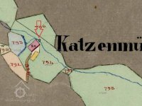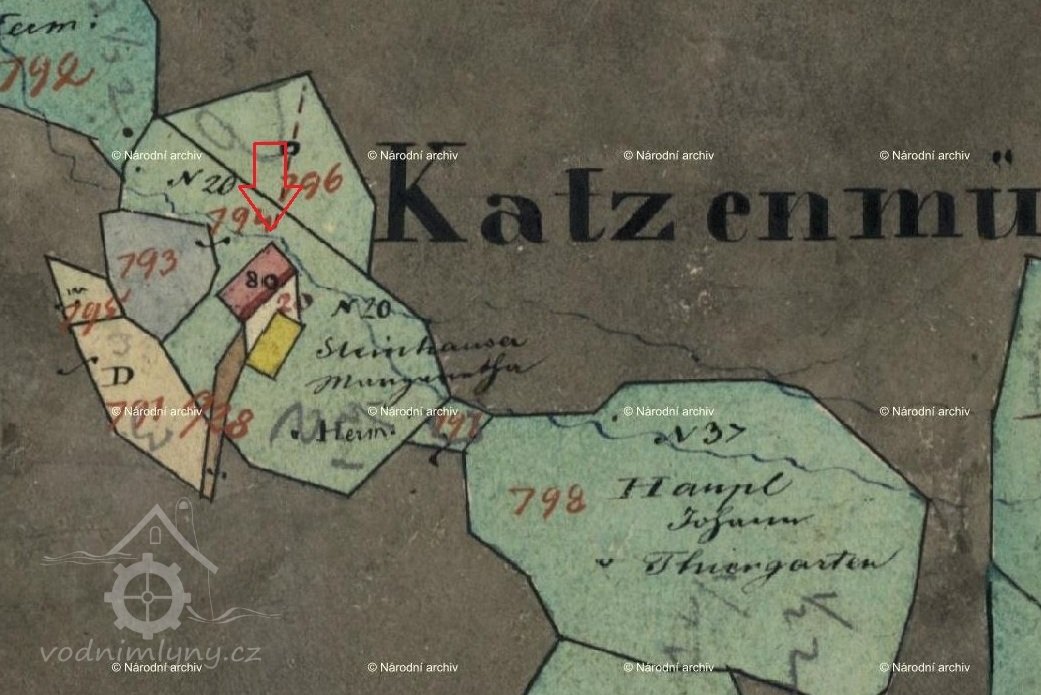 Mlýn je zakreslen na mapách stabilního katastru z roku 1838 pod čp. 20,  jako mlynářka zde byla uvedena Margarethu Steinhauserovou.
