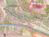 Lamplův mlýn stál na místě dnešních lázní na Kopečné ulici jistě již v 14. století, první dochovaná zmínka o něm je z roku 1351. Podle ní jistý mlýn stojí “sub monte dicto Purzpuhil”, tedy pod Puhlíkem (dnešní Denisovy sady). Roku 1355 tento mlýn koupil Ditlin Mauricus ze zámožné rodiny Mauriciusů. Počátkem 15. století byl majitelem tohoto mlýna bohatý brněnský mlynář Václav Ház. Ten roku 1416 s pomocí mistra Prokopa Peyska z Kutné Hory vybudoval první městský vodovod. Voda byla přivedena kamenným potrubím k mlýnu, kde byla na protějším (levém) břehu Svrateckého náhonu postavena vodárna s čerpadlem hnaným vodním kolem.