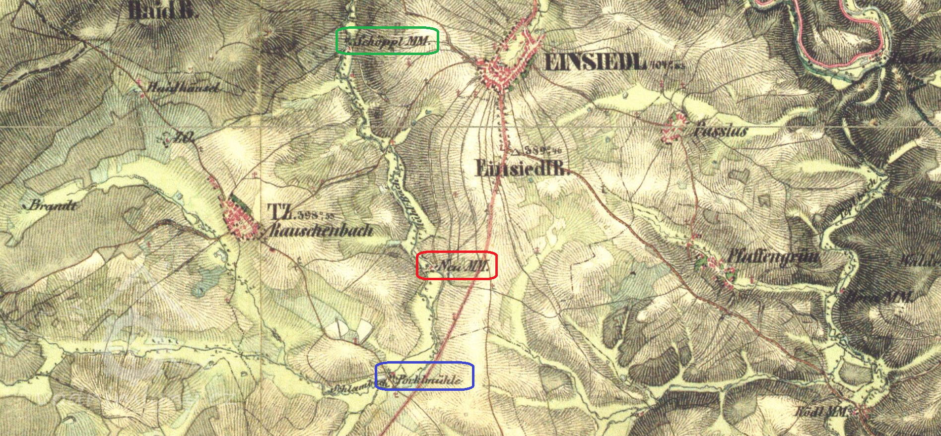 1785 (Josefský katastr) Kohlfurt Mühl