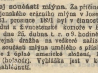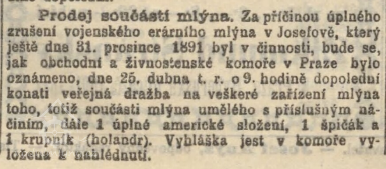 K 1. 1. 1892 byl mlýn úplně zrušen, 25. dubna se konala dražba na veškeré zařízení.