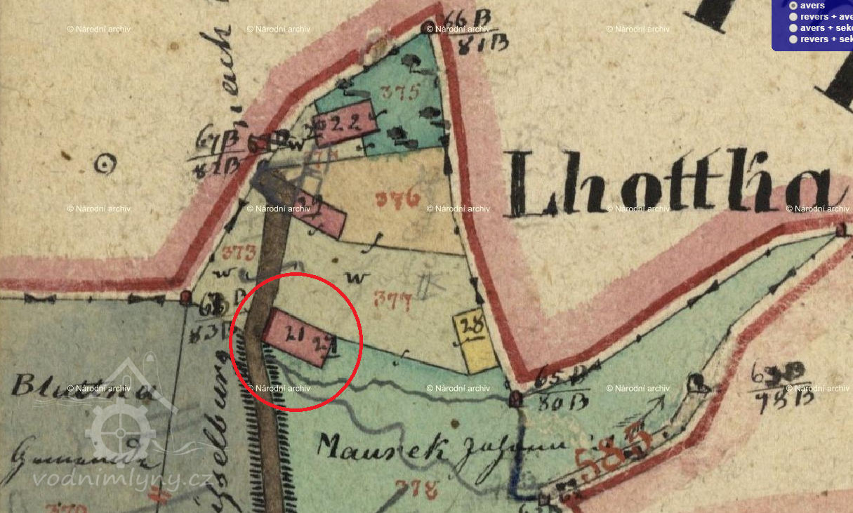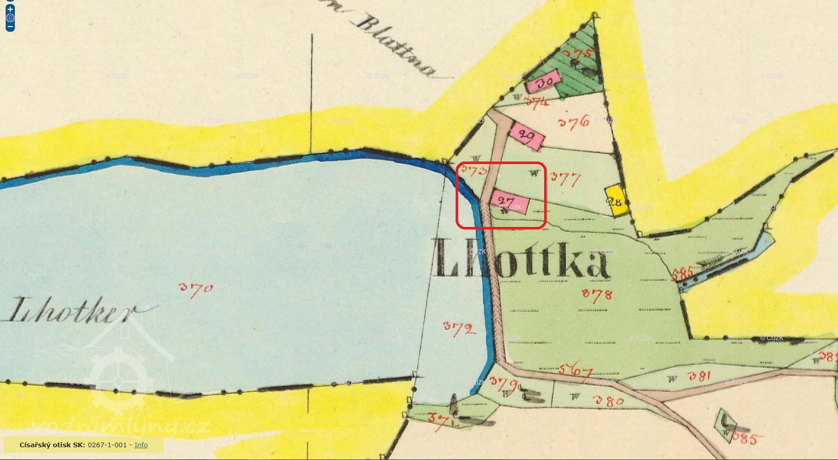 Popis1930: 1 kolo na svrchní vodu, hltnost 0,13 m3/s, spád 3,6 m, výkon 4 HP