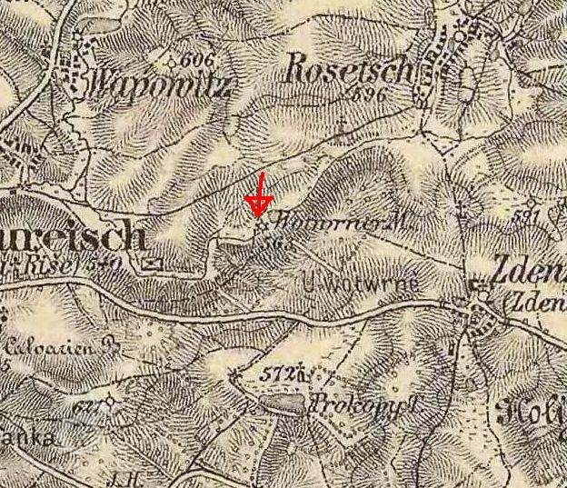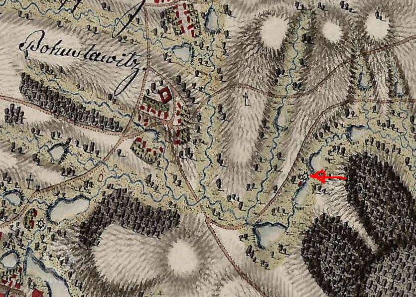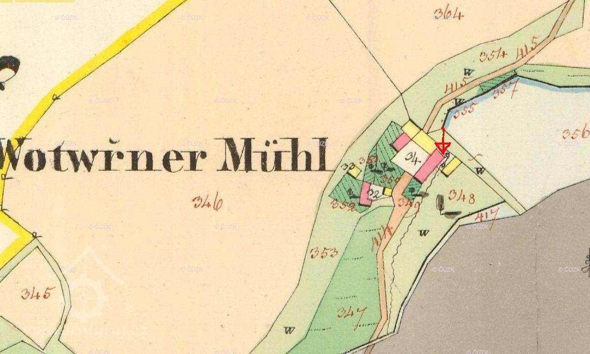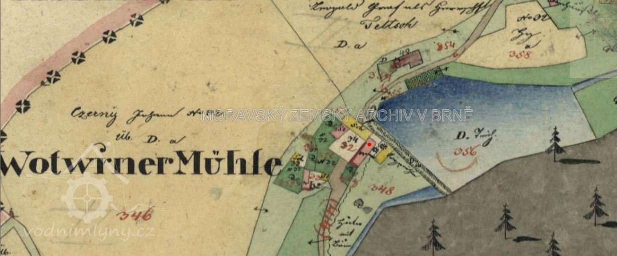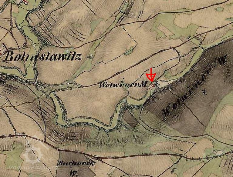 III. vojenské mapování - značka mlýna, pravděpodobně tu byla (s ohledem na lesnaté okolí) i pila, poháněná vodním pohonem.