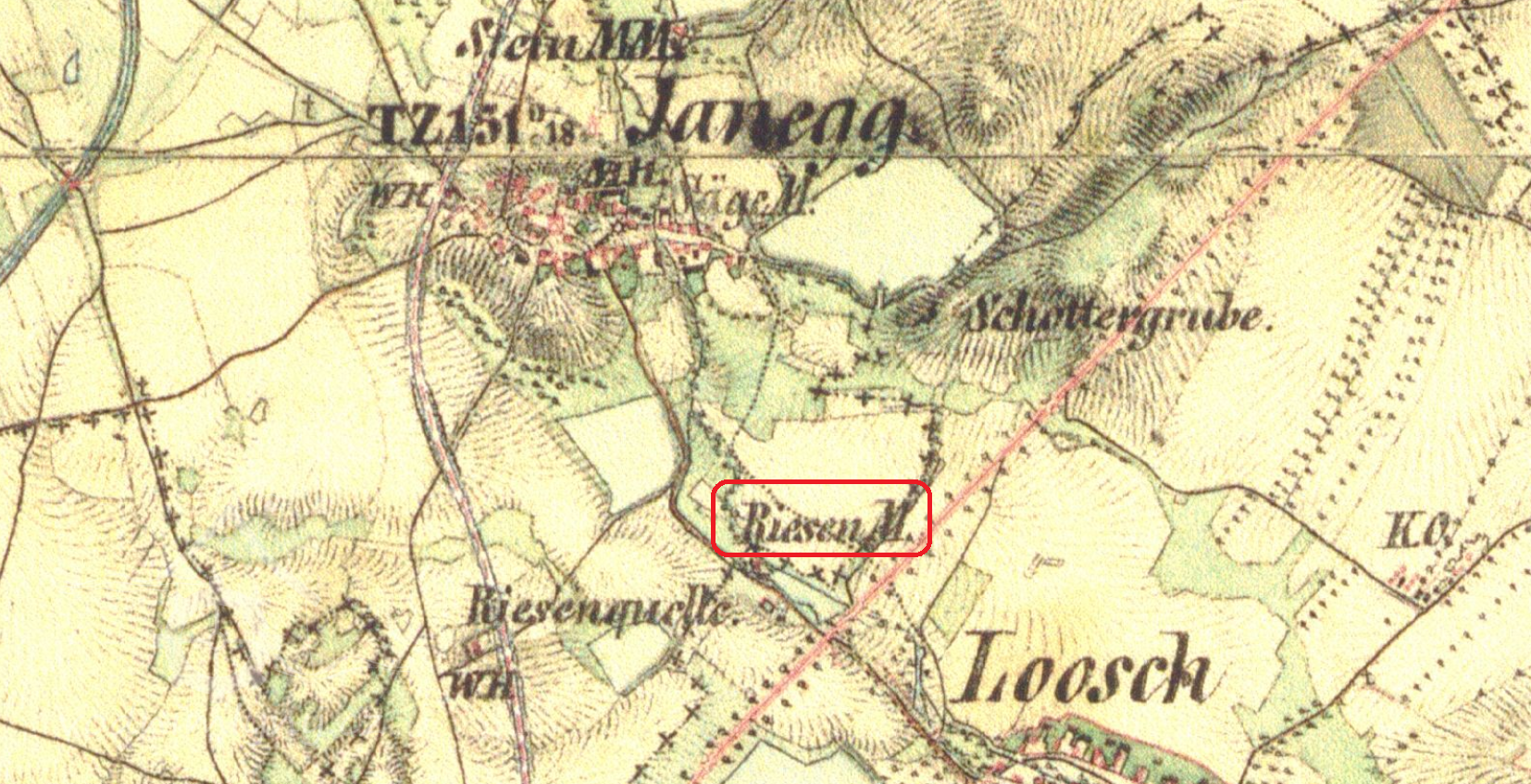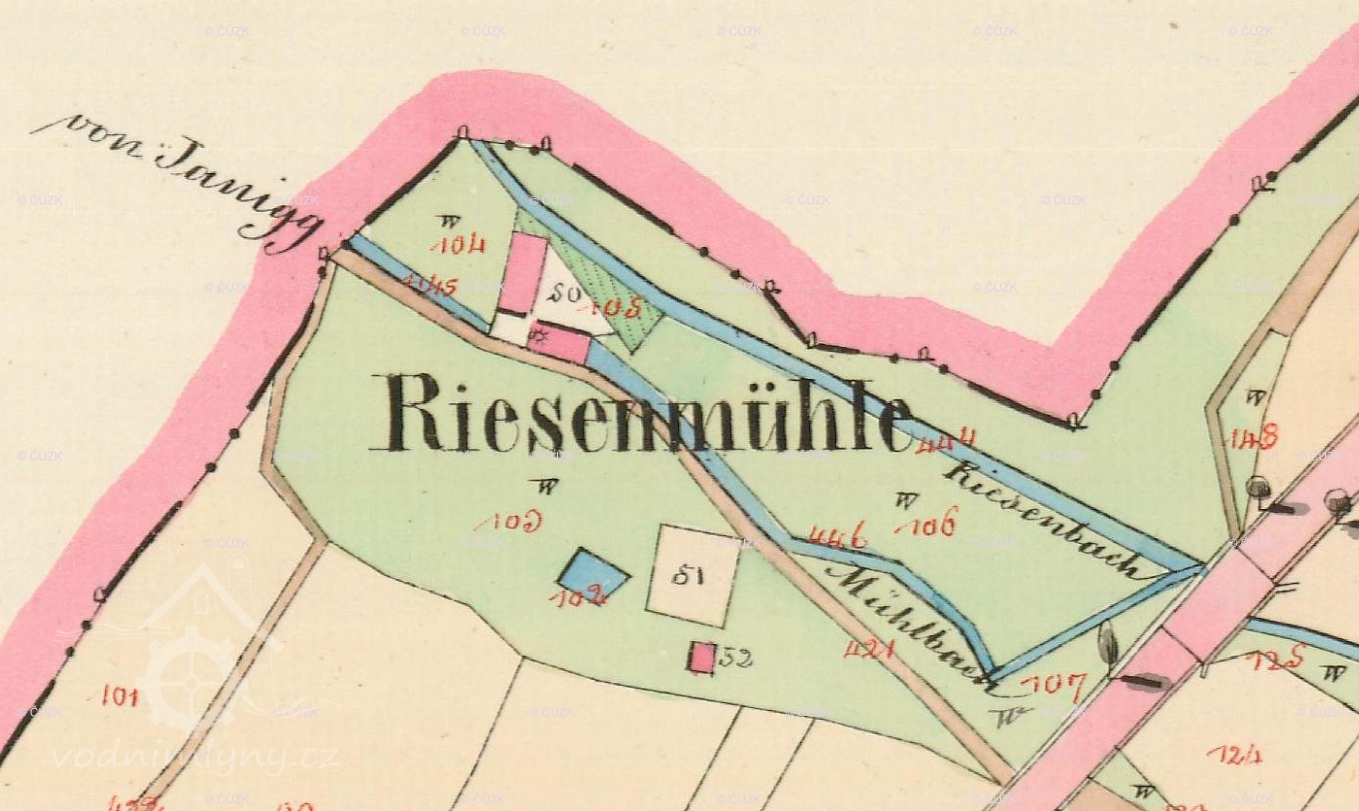 Zcela unikátní mlýn, poháněný přebytkem termální vody z Obřího pramene. V důsledku poklesu vydatnosti pramene kvůli postupující důlní činnosti musel být provoz mlýna roku 1879 na řadu let zastaven.