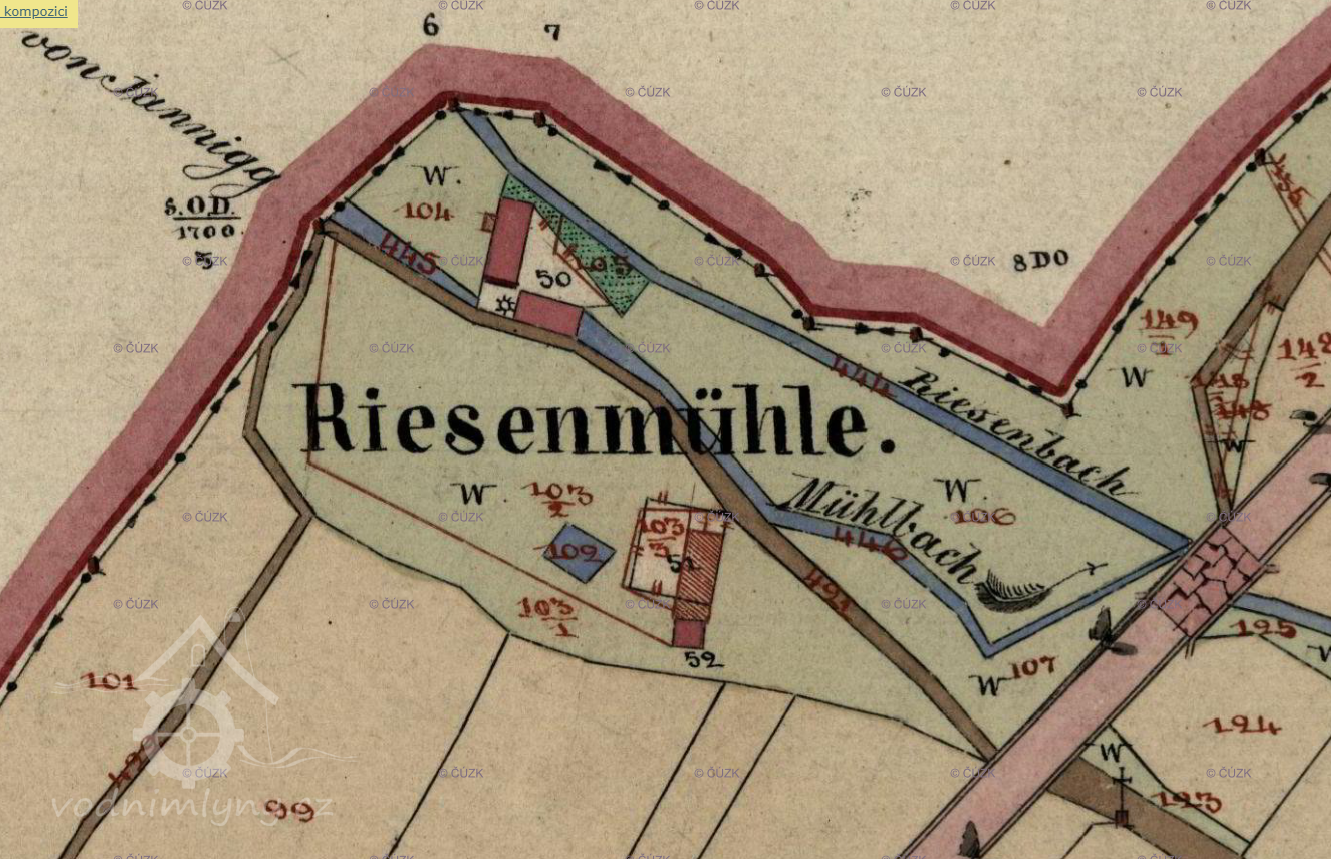 Popis1930: 1 kolo na svrchní vodu, hltnost 105 l/s, spád 4,9 m, výkon 4,46 HP