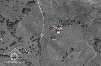 Letecký snímek z roku 1958 ukazuje mlýn již jako zříceninu.