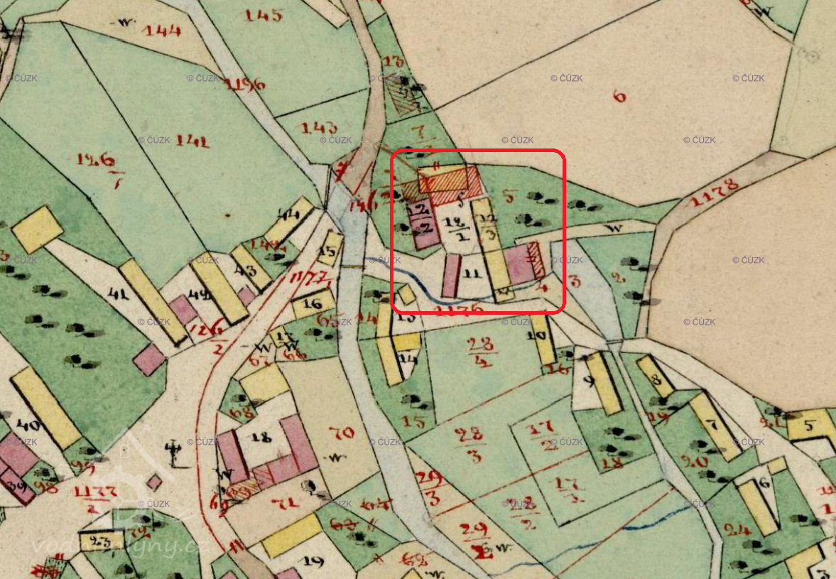 1930: 1 kolo na svrchní vodu, hltnost 0,092 m3/s, spád 6,36 m, výkon 4,9 HP