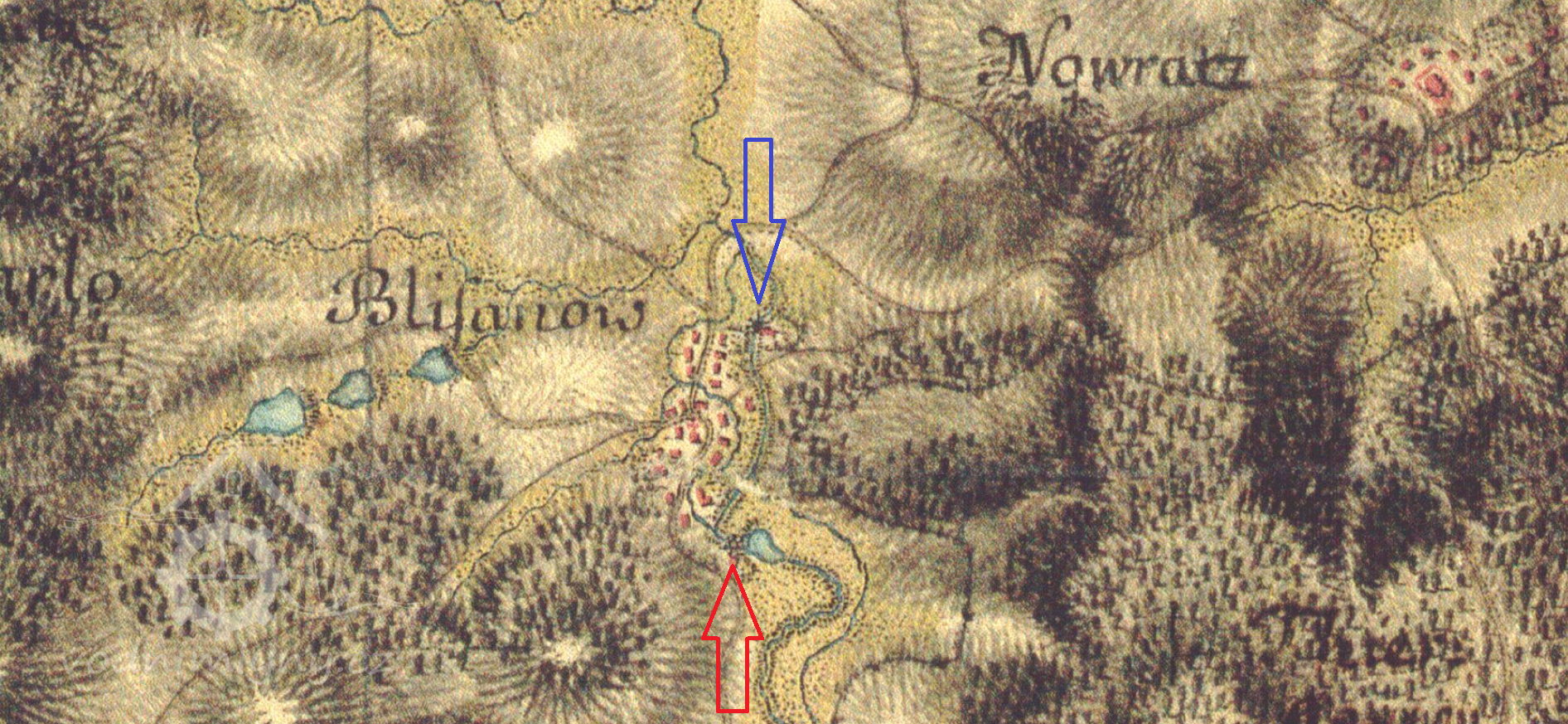 Dolní mlýn v Blížanovech, neobvykle posazený ve svahu, podle nedochovaného nápisu snad z roku 1648, dnes nepříliš citlivě přestavěný.