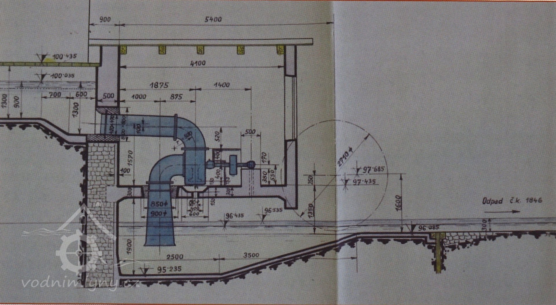 Popisinstalována 1939, výkon 12 HP, hltnost 315 l/s, spád 3,6 m, 345 ot/min.