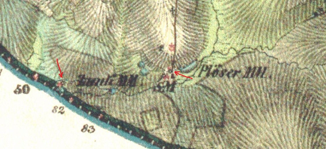 Pleš s nedalekým mlýnem je zakreslena v mapě z roku 1629.