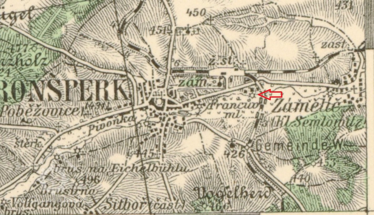 III. vojenské mapování – Františko-josefské (1877-1880) jako Francův mlýn.