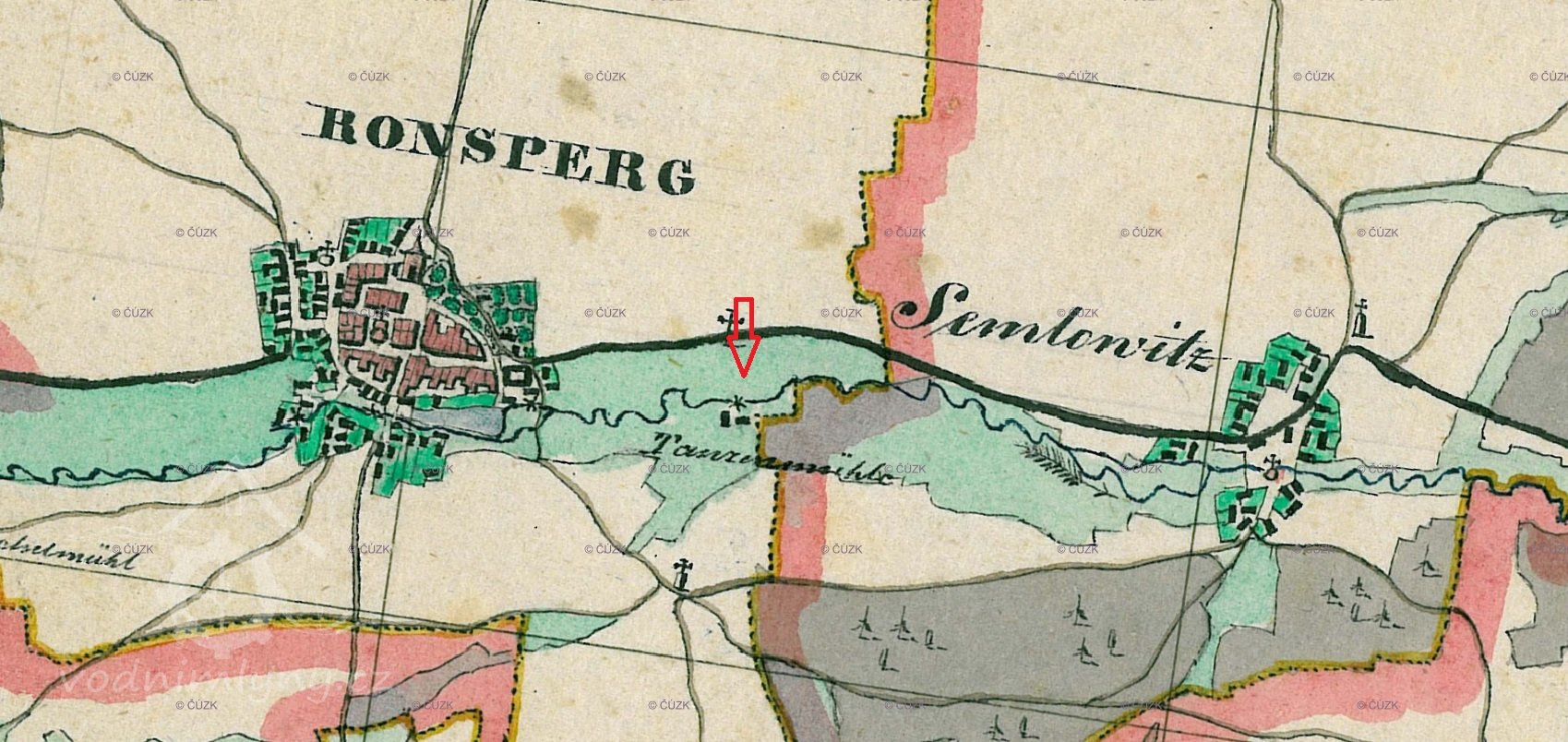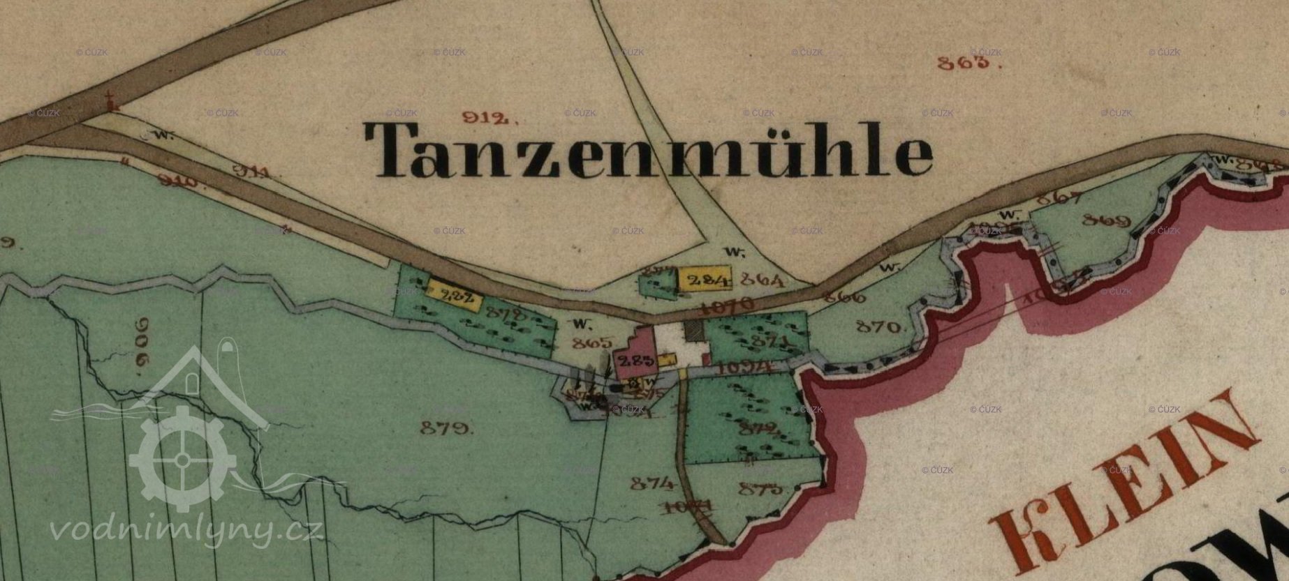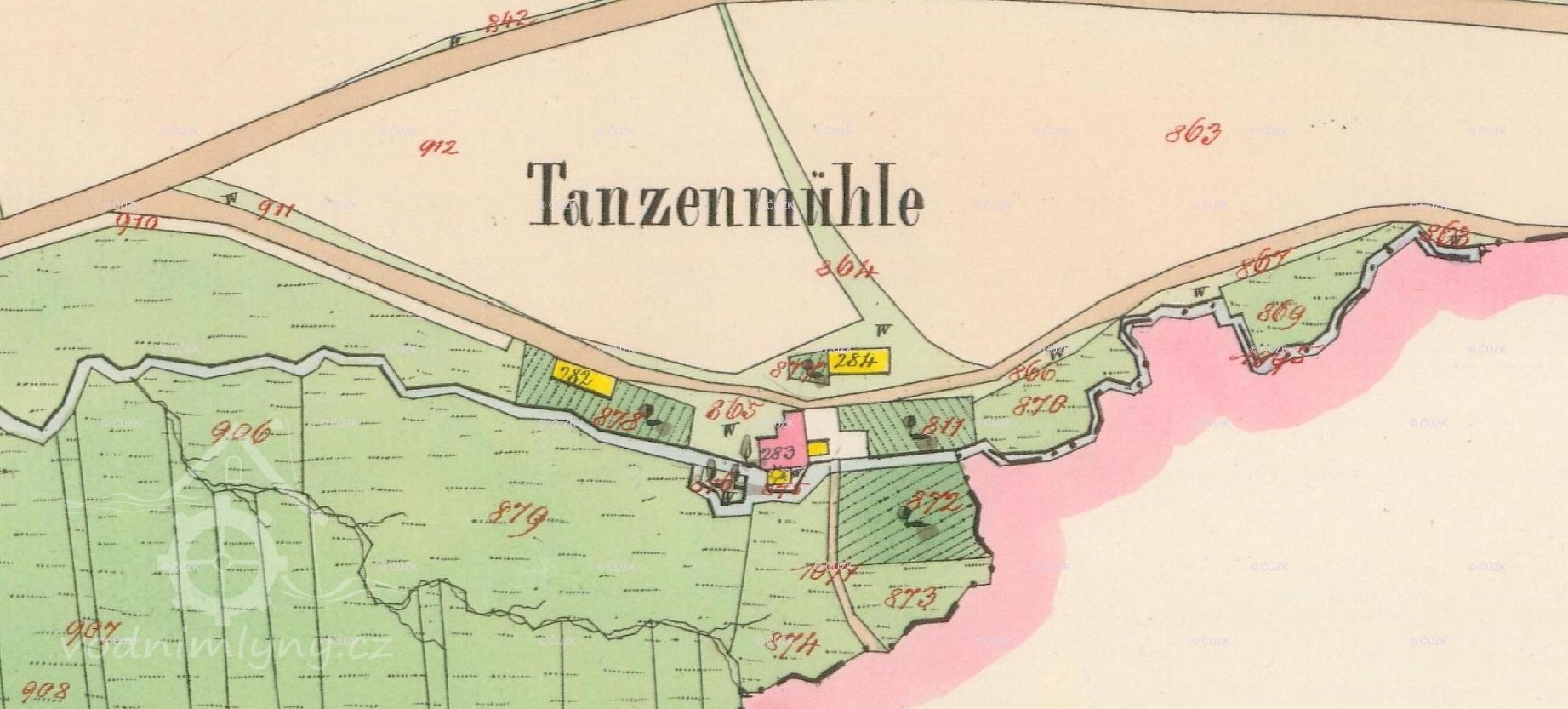 Na I. vojenském mapování – josefském (1764-1768 a 1780-1783) je zakreslen jako Wanzmühle.