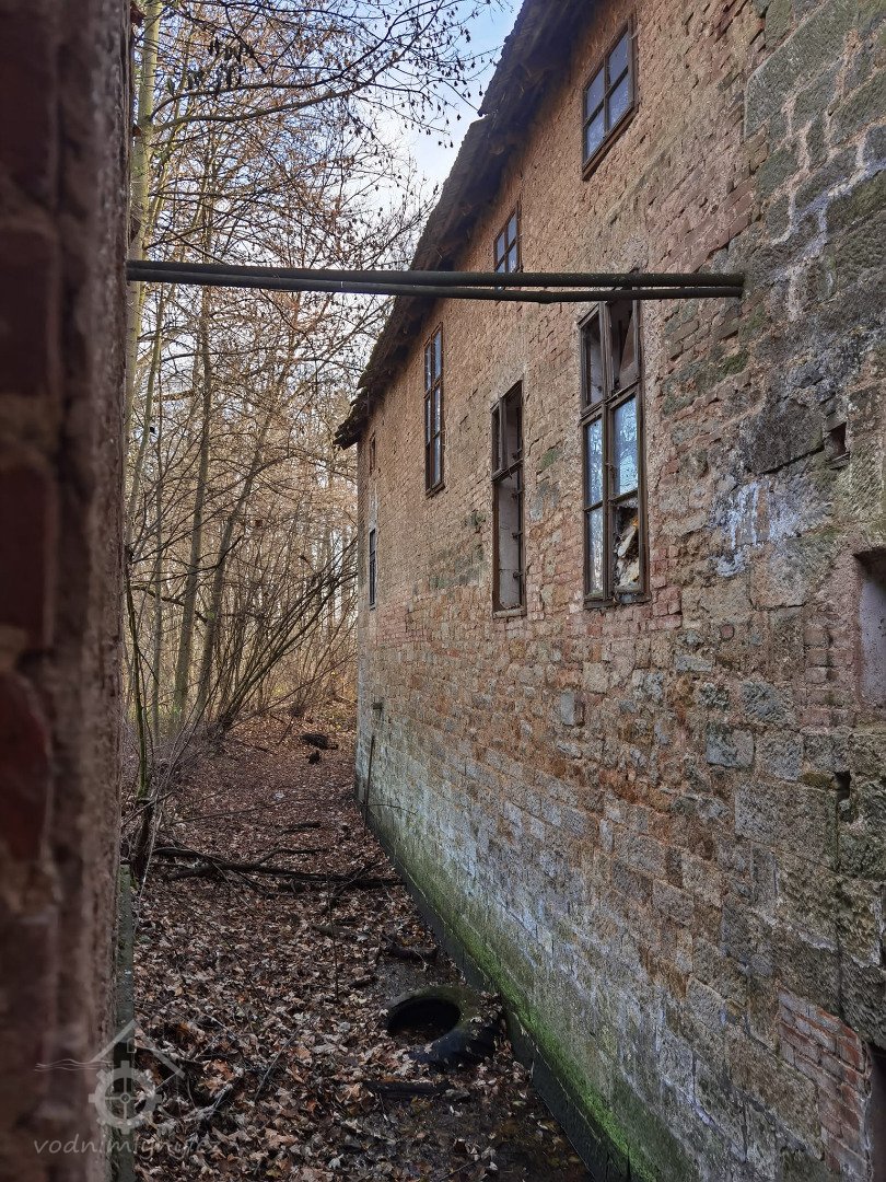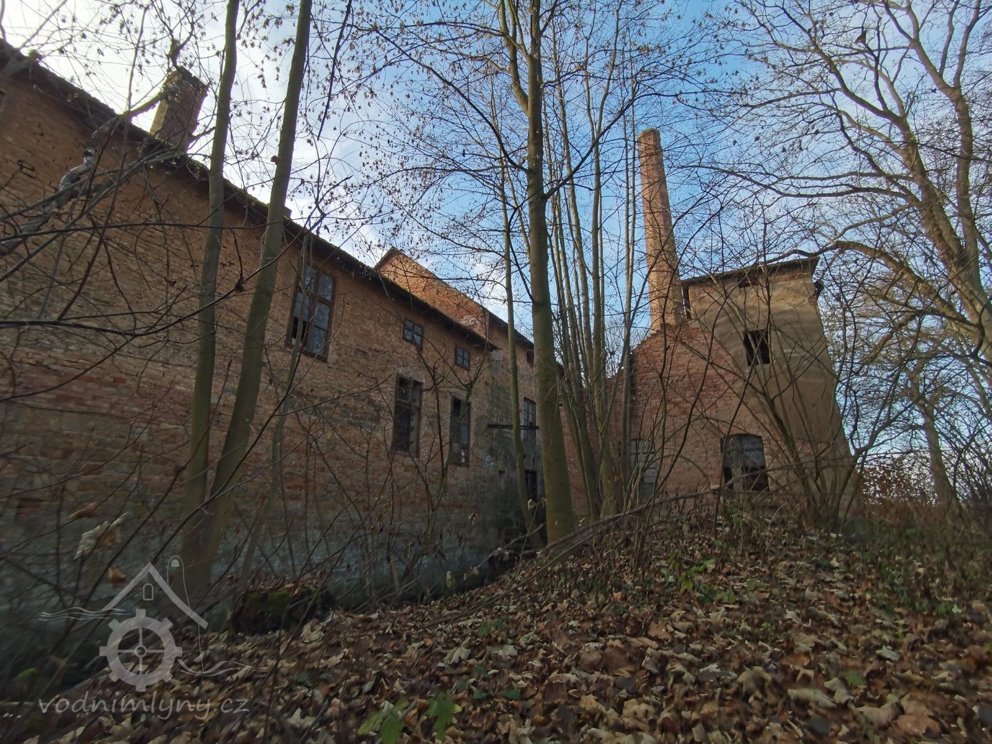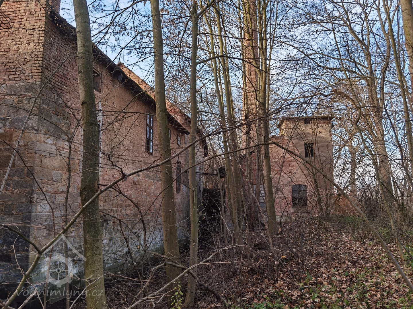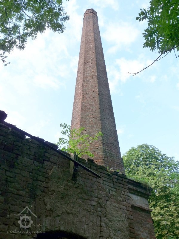 Mlýn se strojovnou a dochovaným komínem od stabilního parního stroje, který sloužil jako pomocný motor.