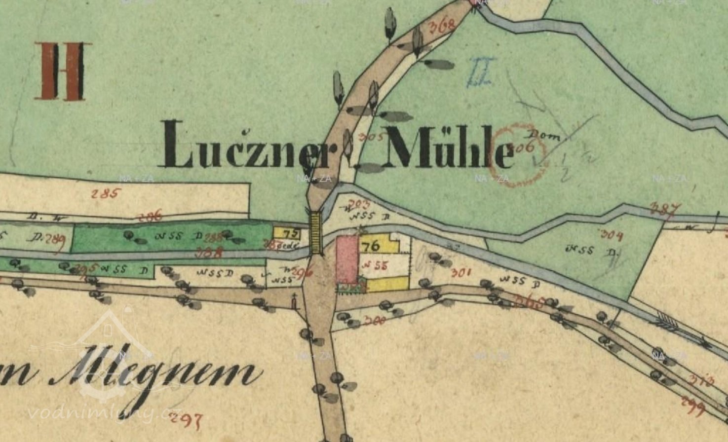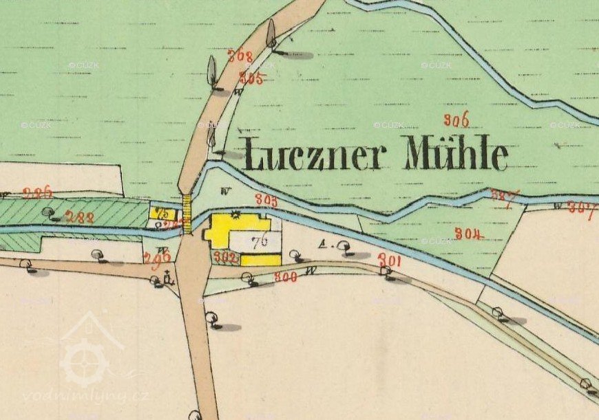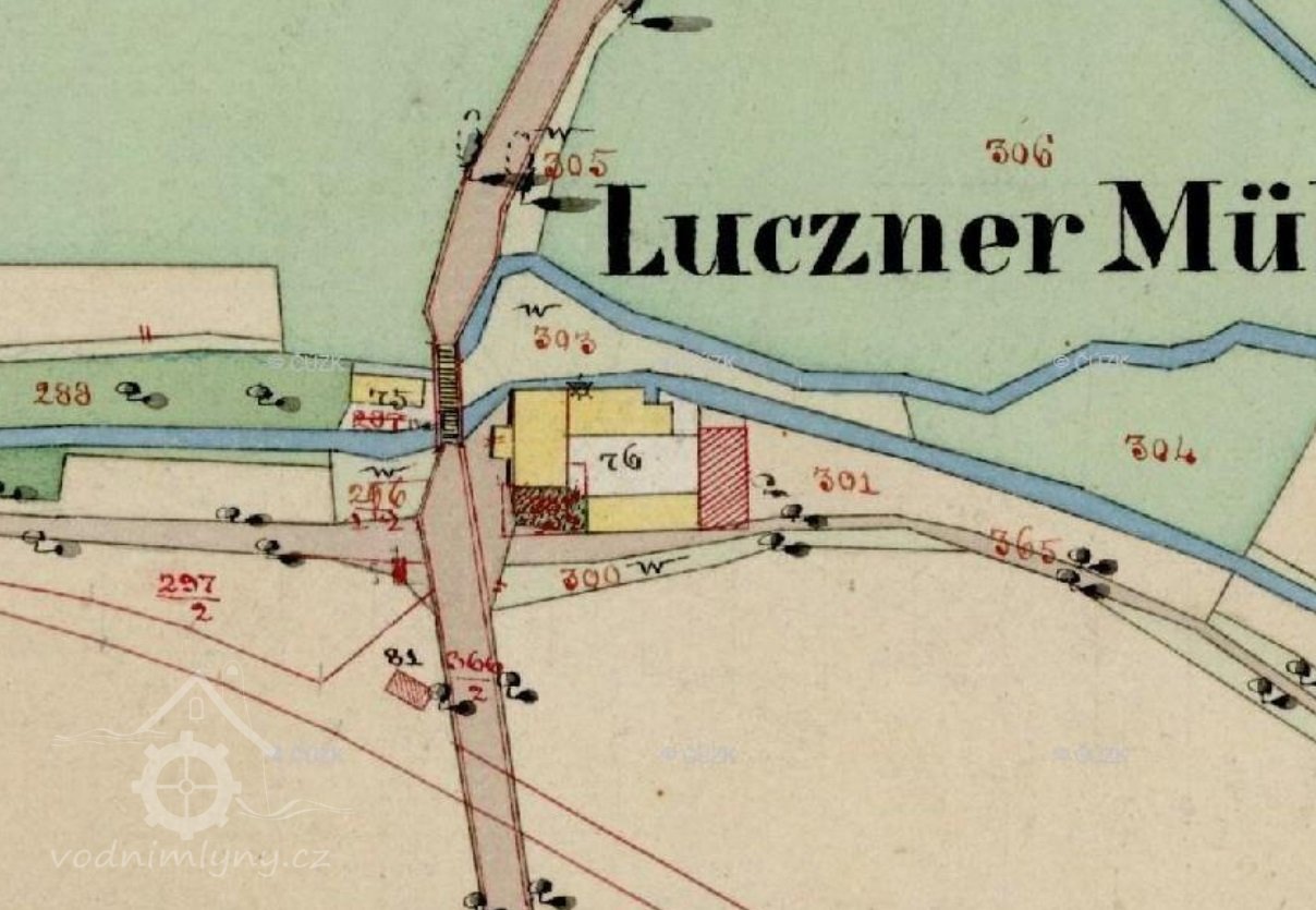 PopisV r. 1930 zde byla 2 kola na svrchní vodu, průtok 0,357 m3/s, spád 4,97 m, výkon 17,45 k.