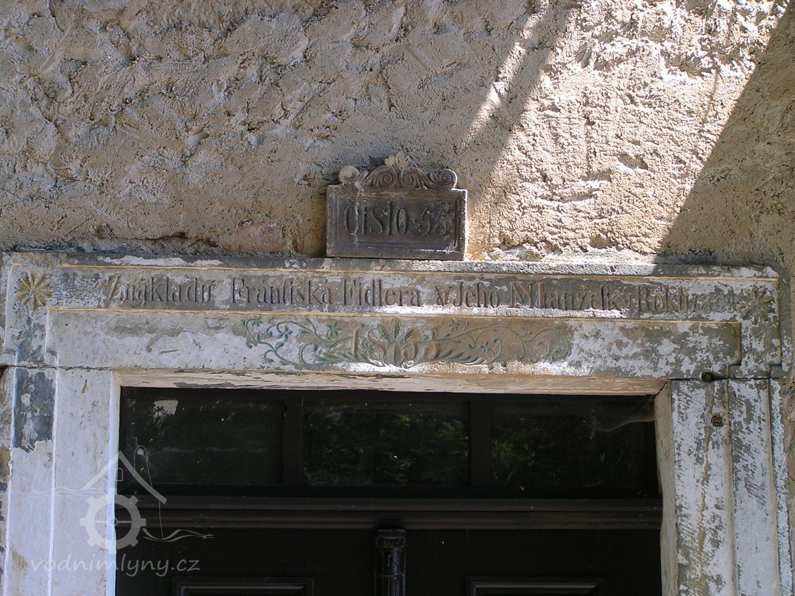 Portál se jménem Františka Fidlera z roku 1853, patrně proběhla přestavba mlýna