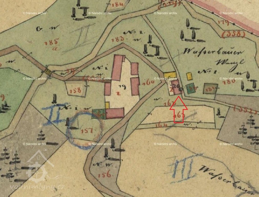 Dalším v pořadí byl Janův syn Václav Wasserbauer, vlastník svobodného gruntu čp. 1 a přináležejícího mlýna čp. 2, který po otci zdědil v ceně 1234 zlatých. Václav Wasserbauer je zde uváděn do roku 1838, kdy byl grunt s mlýnem připsán Tomáši Wasserbauerovi za 1100 zlatých. Od roku 1841 byla spolumajitelkou Tomášova manželka Marie, rozená Zelená z Horové.