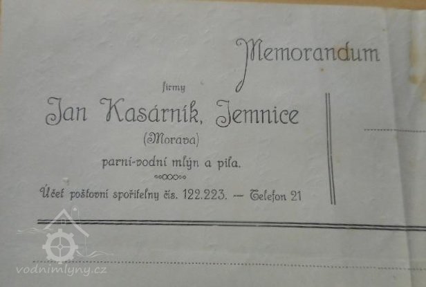 V roce 1877 je na mlýně uváděn Václav Kasárník / nar. 27.9.1835 v Nové Bystřici/, již ne jako nájemce, ale majitel mlýna. Ten zde provedl stavební úpravy. Od té doby zde byla provozována také pila.