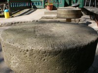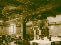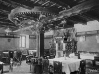 Palečné kolo využito k výzdobě interiéru restaurace, mlecí kameny před budovou.