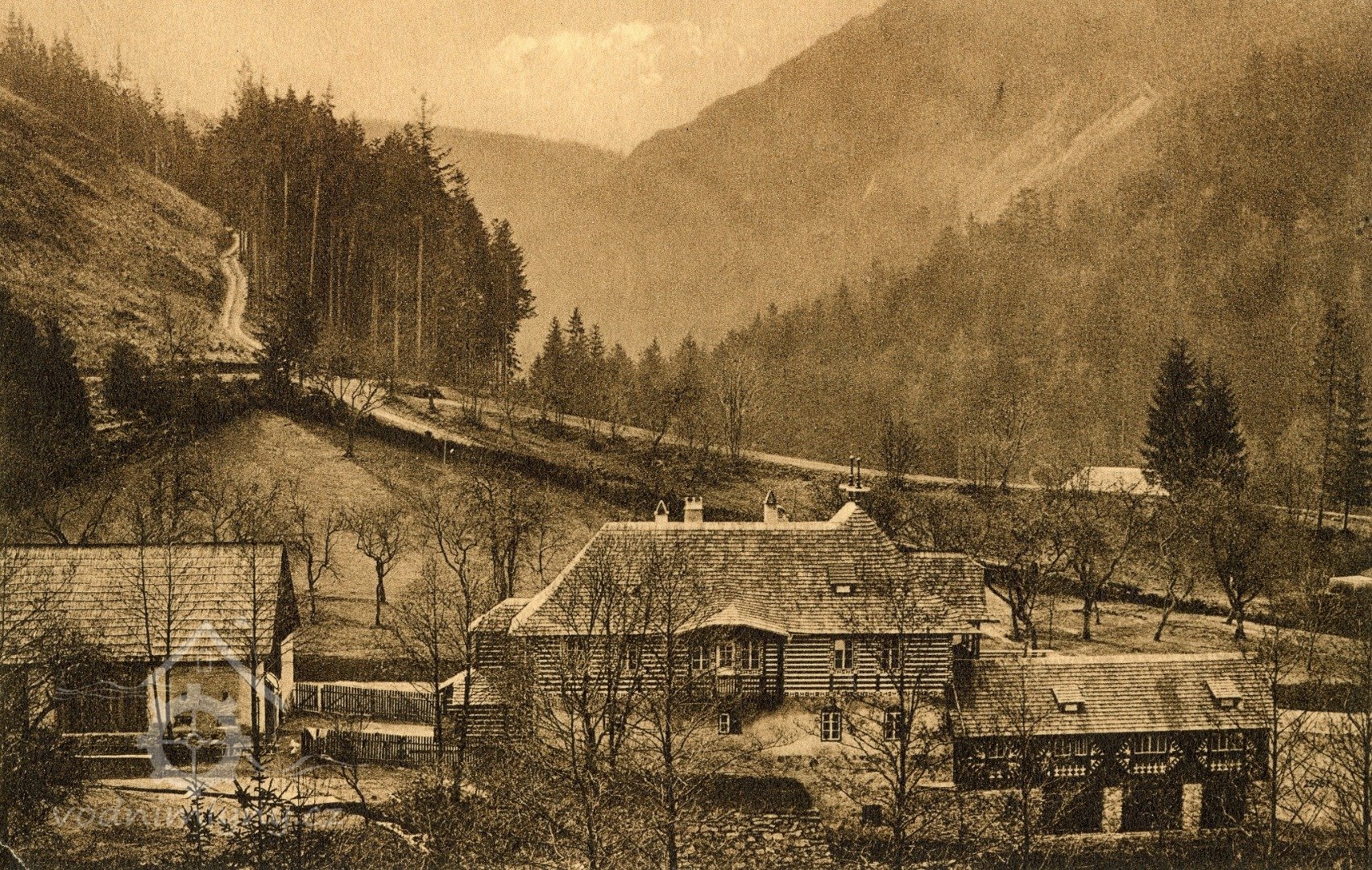 Vybudováno r. 1910 z tehdejšího mlýna a pily. Hodnotná pseudolidová stavba nár. umělce Dušana Jurkoviče s přestavbou. Hodnot. strop, rázov. nábytek.