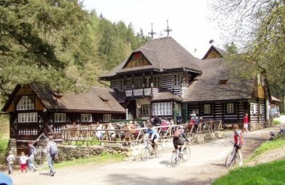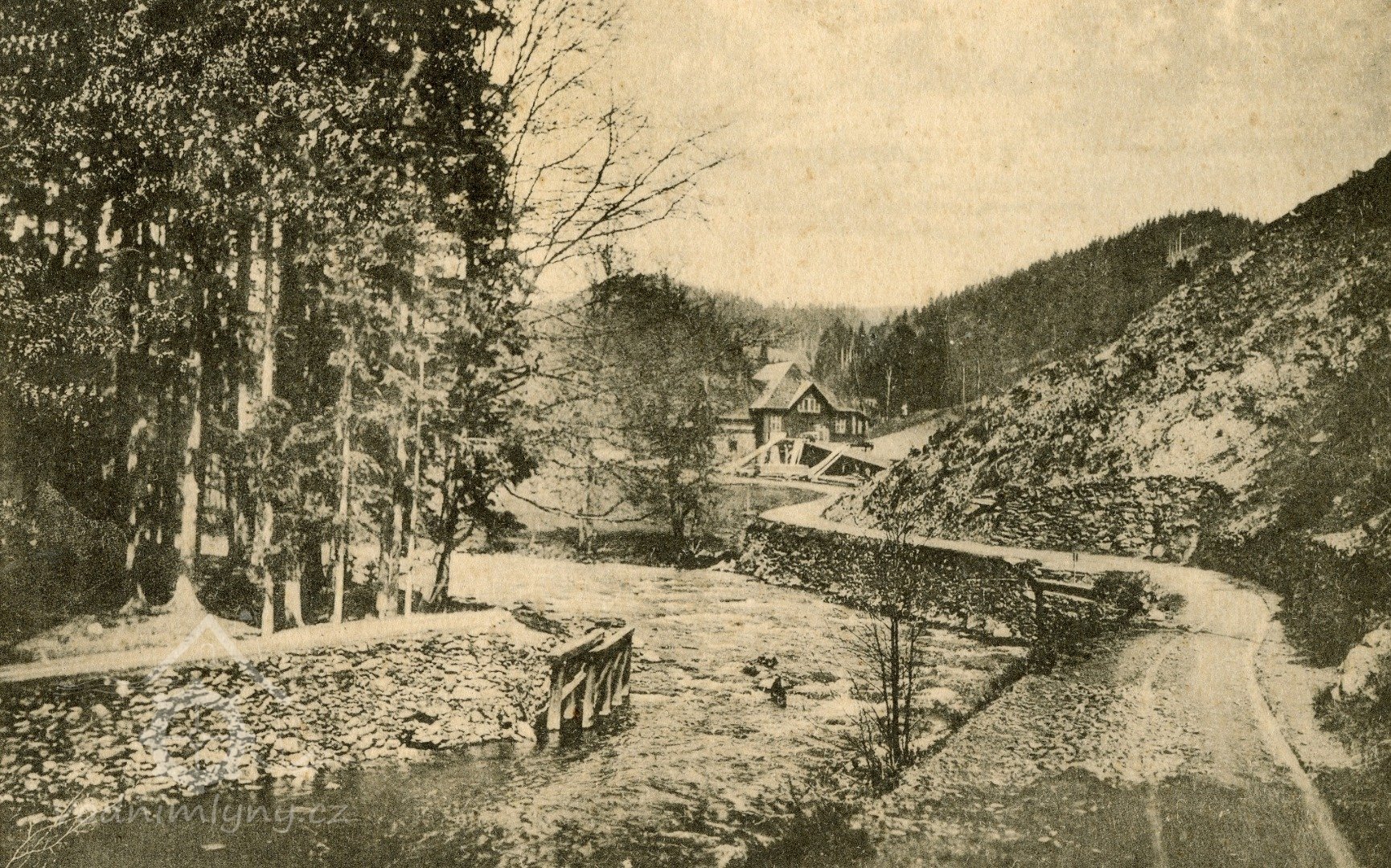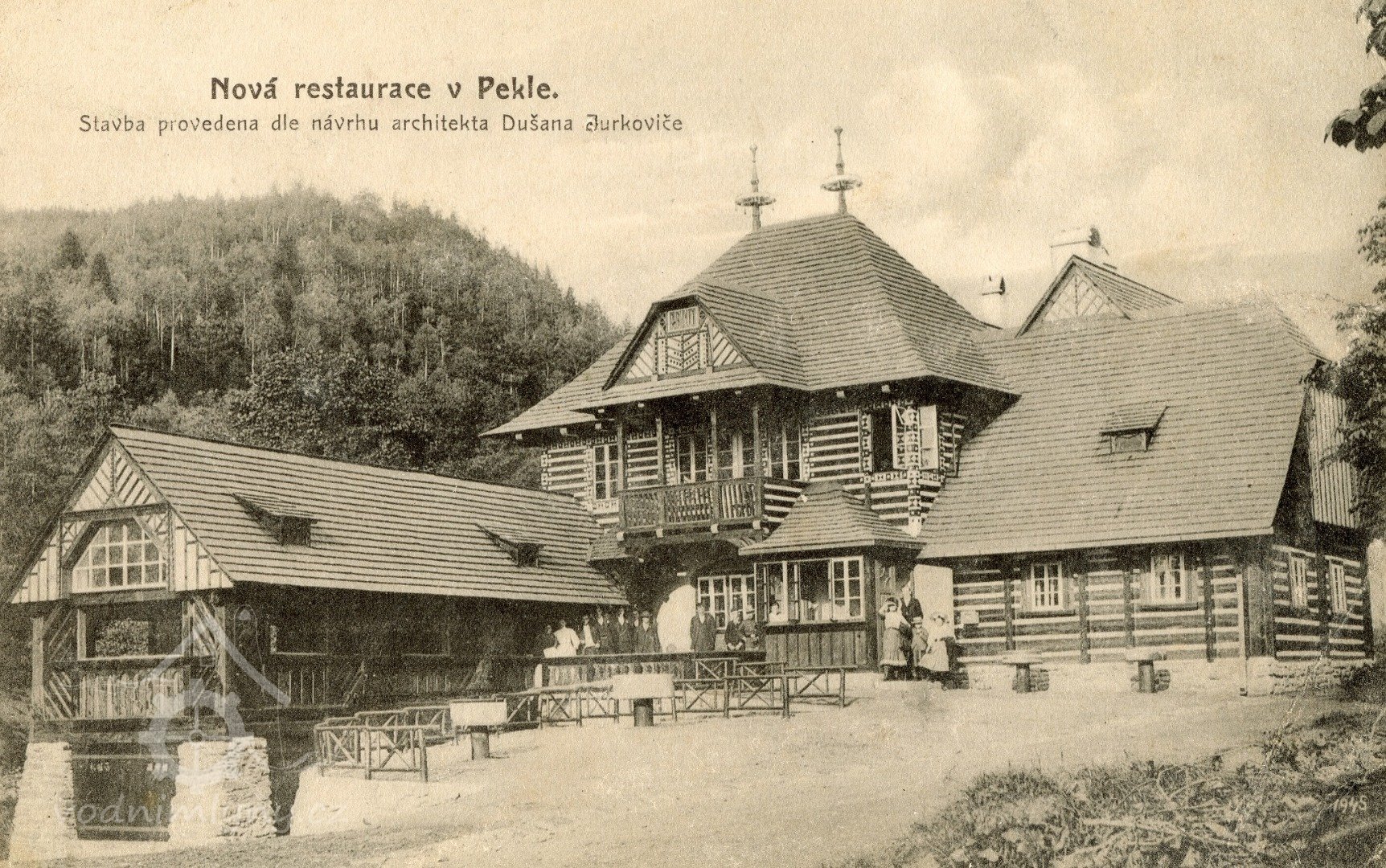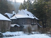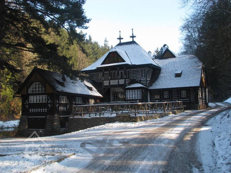 Původní mlýn Peklo byl přestavěn architektem Jurkovičem na Bartoňovu turistickou útulnu.