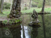 Po straně hostince, pod jeho zdi, zasahuje rybníček s rozkošnou soškou Vodníka od mistra Marka z Nového Města nad Metují. U tohoto rybníčka je drobné stavidlo. Před restaurací stojí stolky z mlýnských kamenů. Na okapech ozdobní čerti (též uvnitř nad krbem).