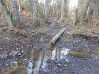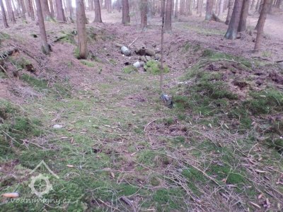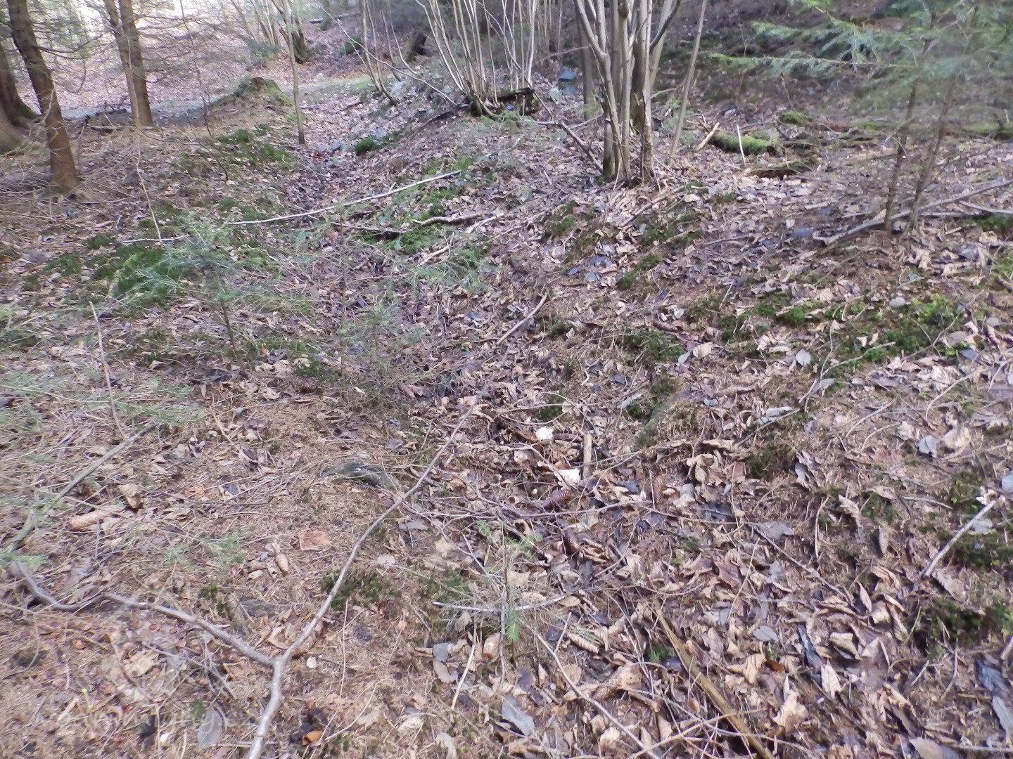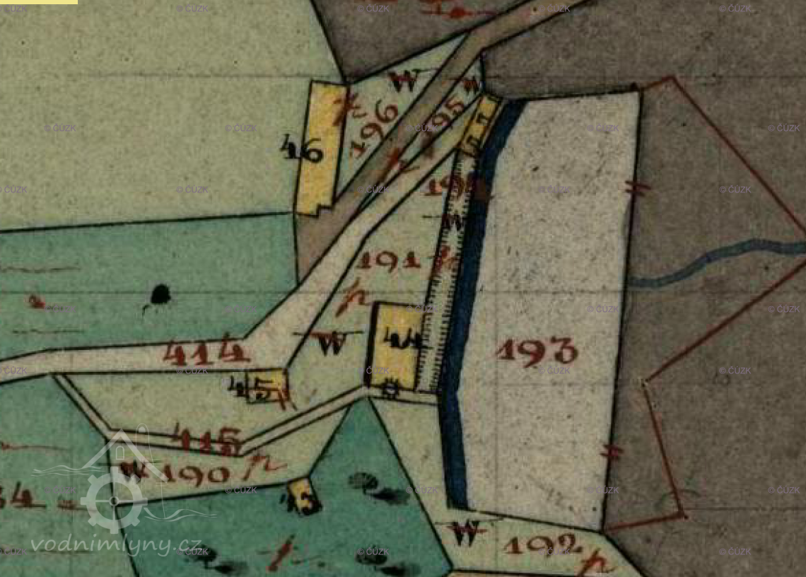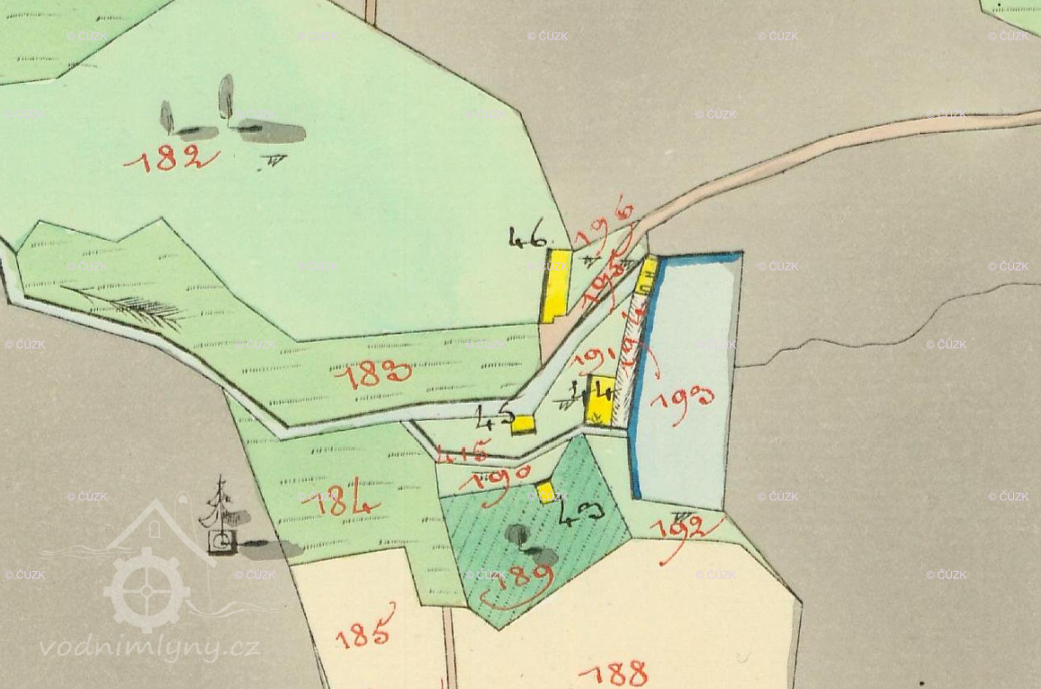 Mlýn, připomínaný k roku 1717, 1929 přestavěný na hájovnu, dnes zcela zaniklý, v lese patrné jen zbytky náhonů a terénní nerovnosti.