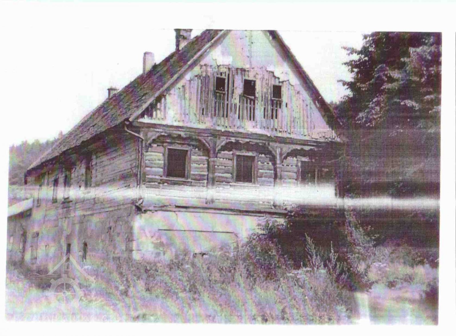 Pohled na dnes již zbořený mlýn. Fotografie pochází od potomků mlynáře dnes žijící v Německu. Za poslání fotografie děkuji Zdeňce Bílkové, před rokem 1945, © autor neznámý