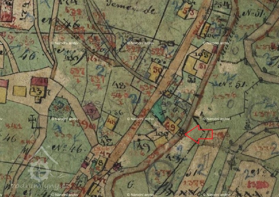 Ke konci 18. století do roku 1806  byl v Soupise poddaných velkostatku Česká Kamenice mlýn evidován pod č. 63, v roce 1806 mu bylo přiděleno čp. 49.